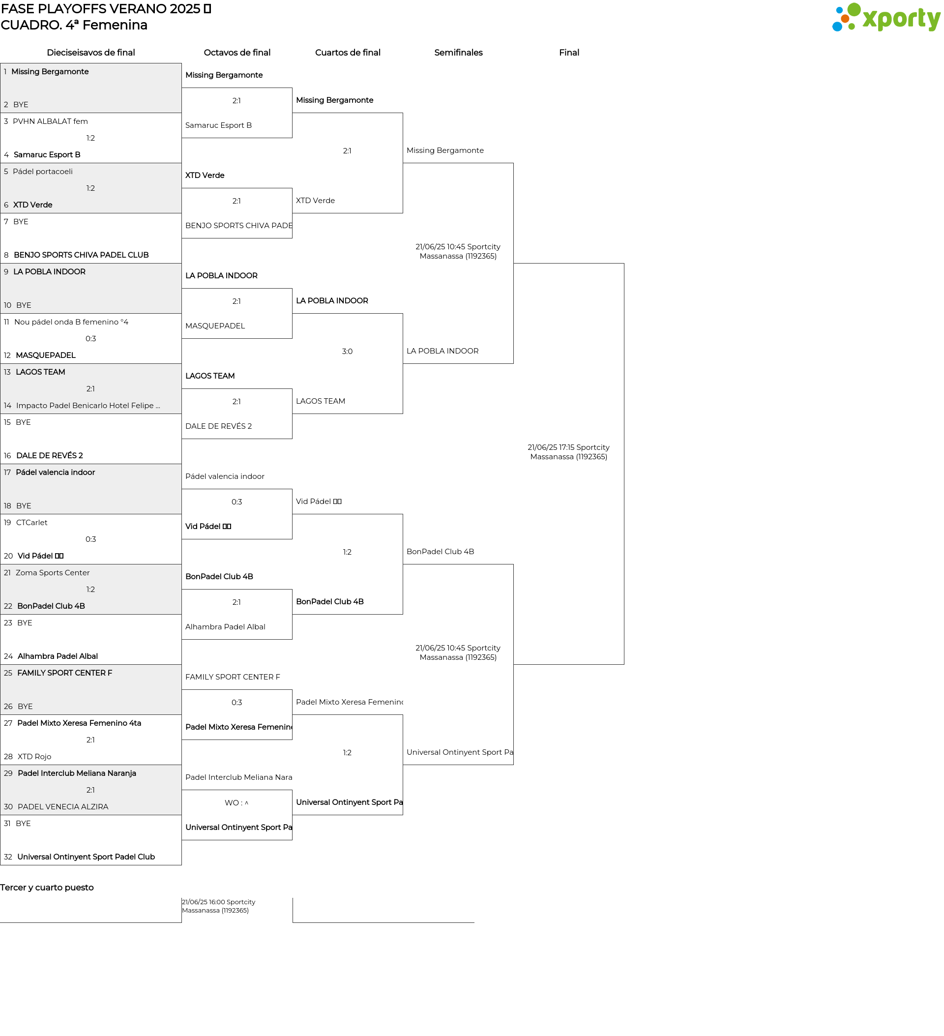 sรกbado, 21 de junio de 2025 16:00 . Sportcity Massanassa (...