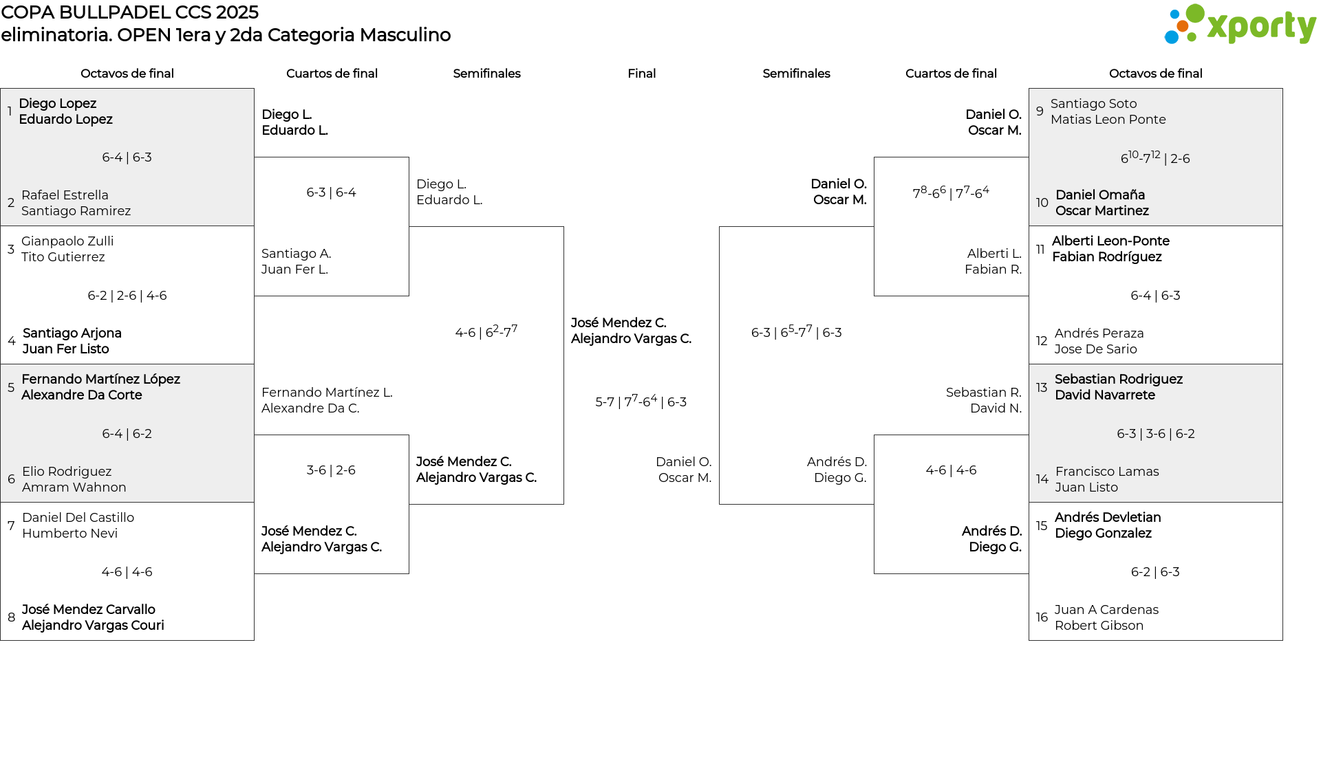 Cuadro principal OPEN 1era y 2da Categoria Masculino