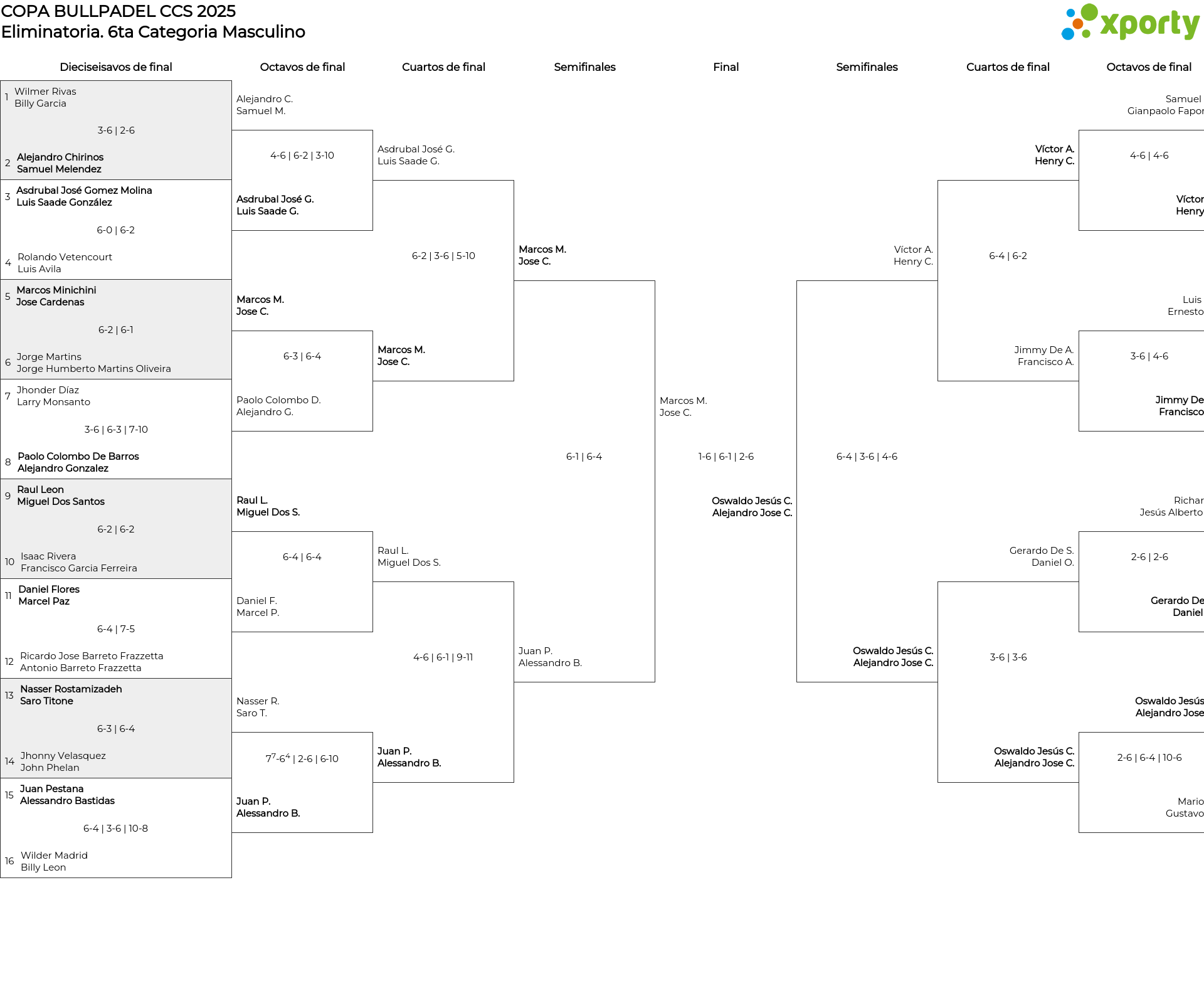 Cuadro principal 6ta Categoria Masculino