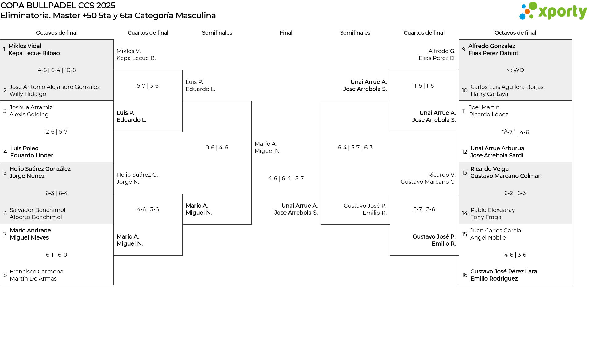 Cuadro principal Master +50 5ta y 6ta Categoría Masculina