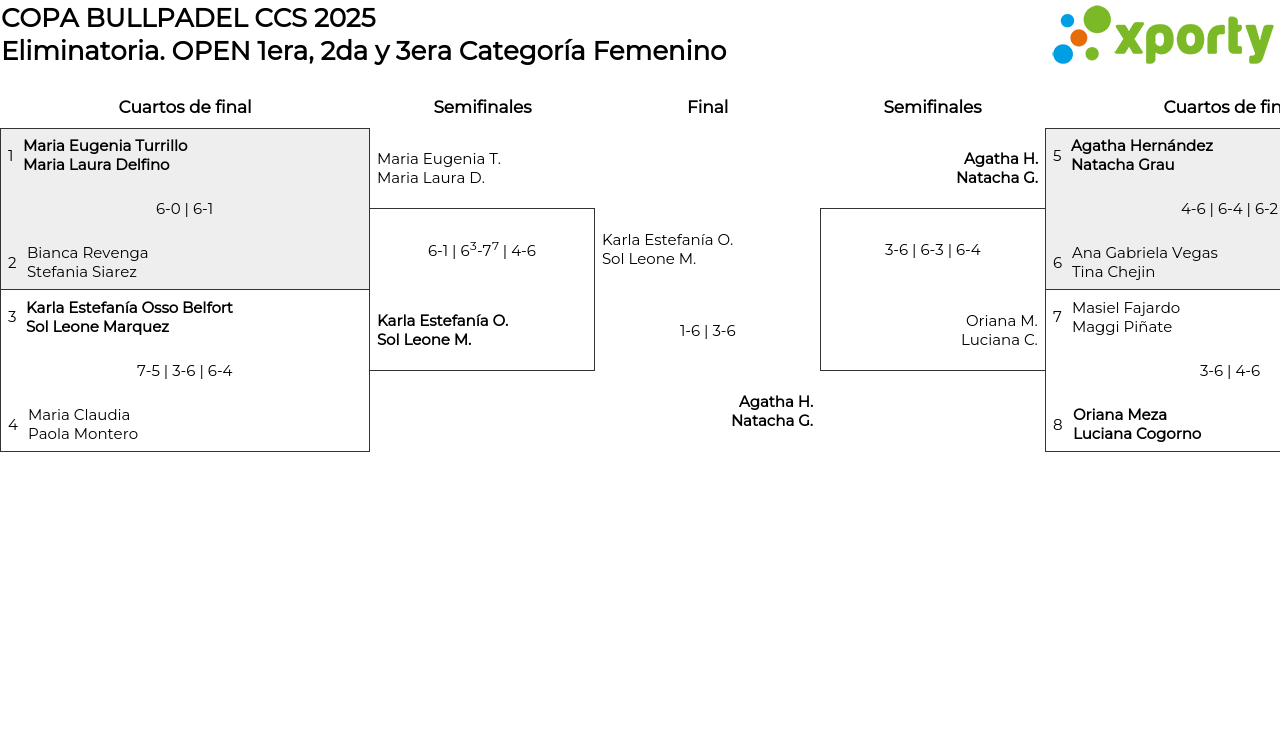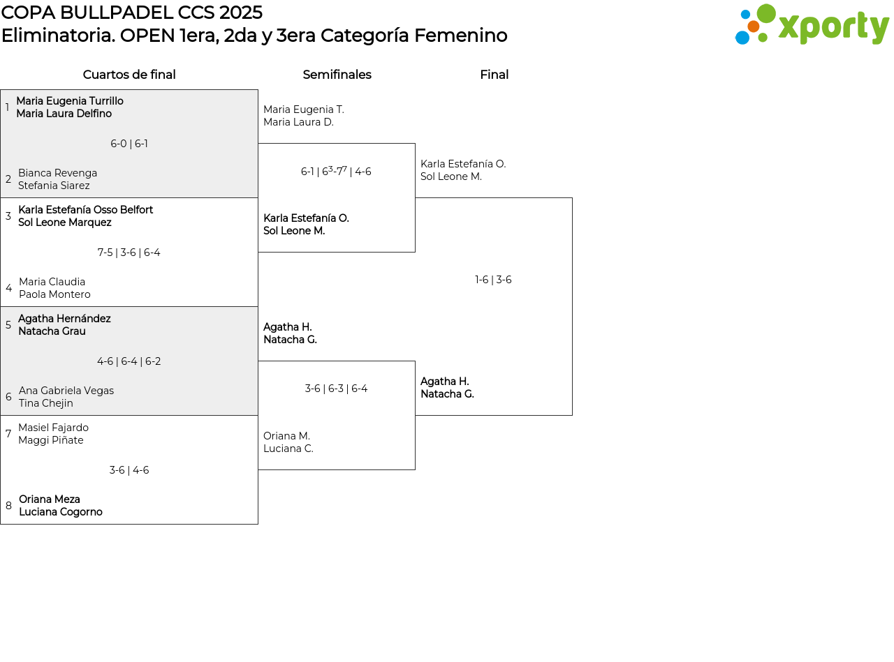 Cuadro principal OPEN 1era, 2da y 3era Categoría Femenino