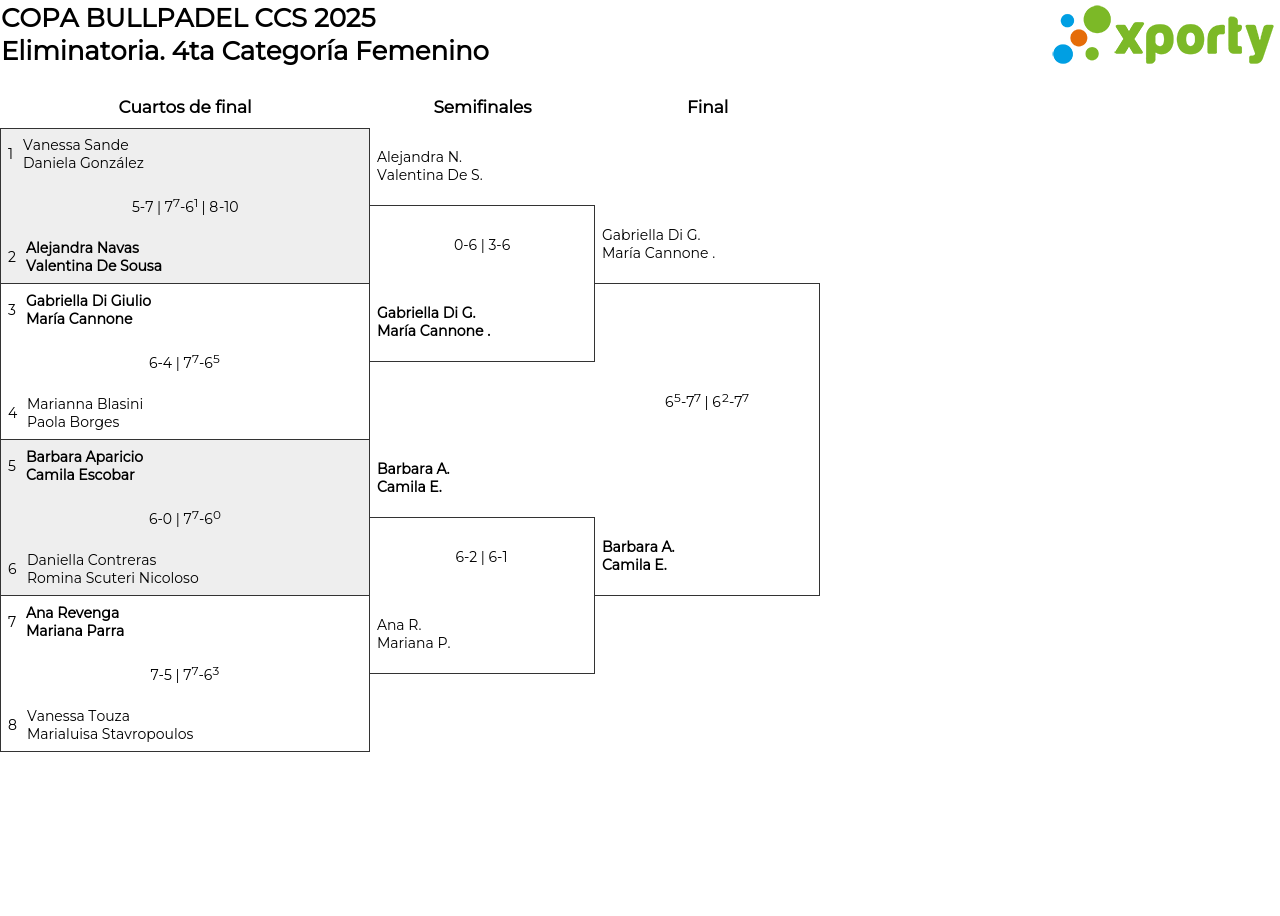 Cuadro principal 4ta Categoría Femenino
