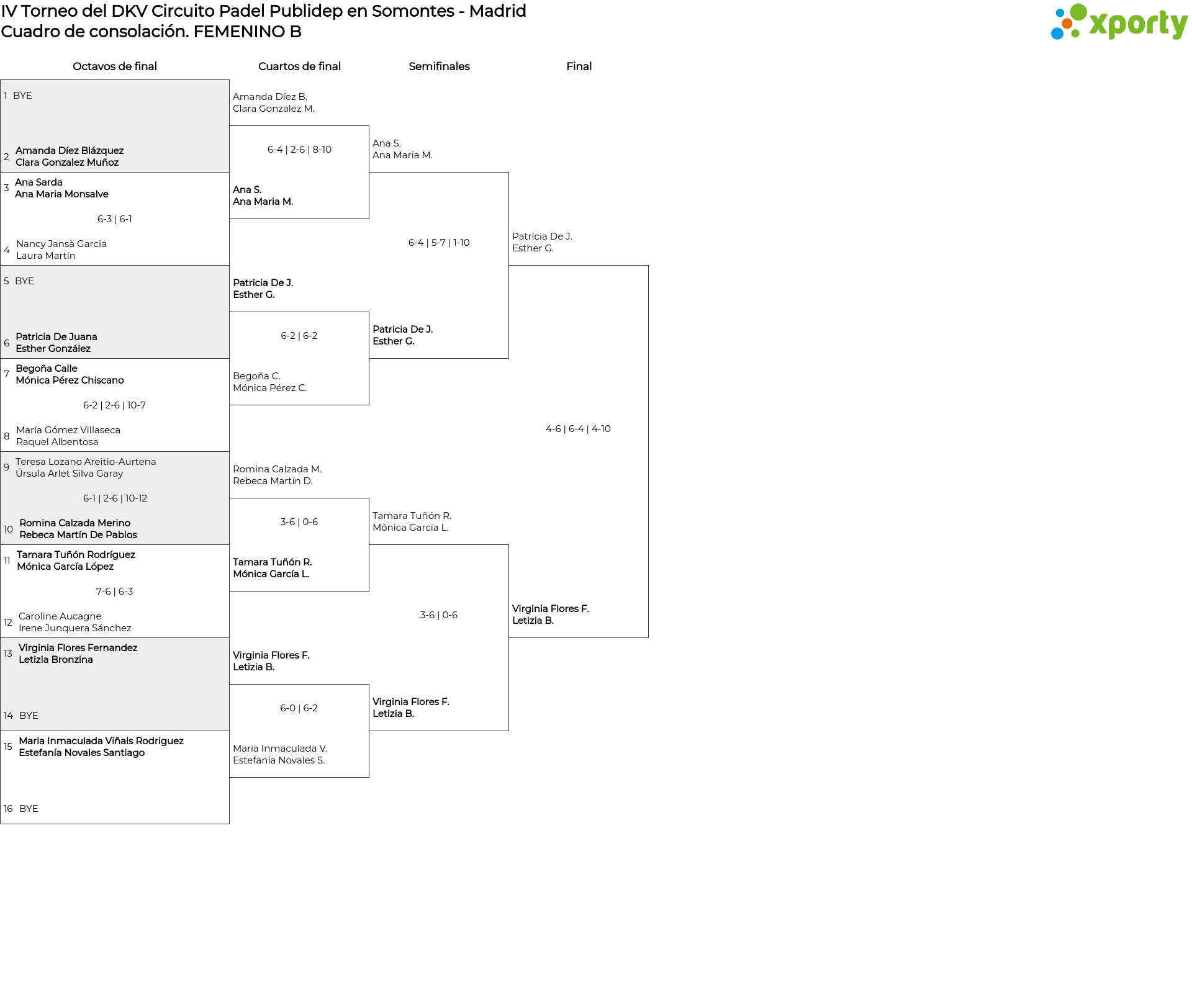 Cuadro principal FEMENINO B