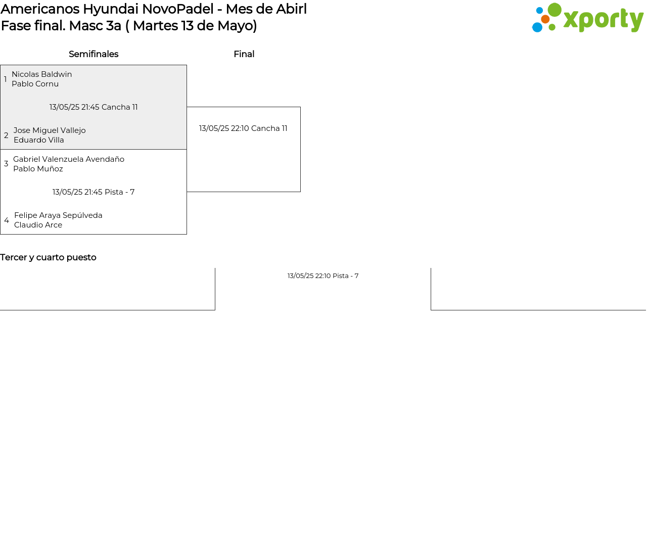 Cuadro principal Masc 3a ( Martes 13 de Mayo)
