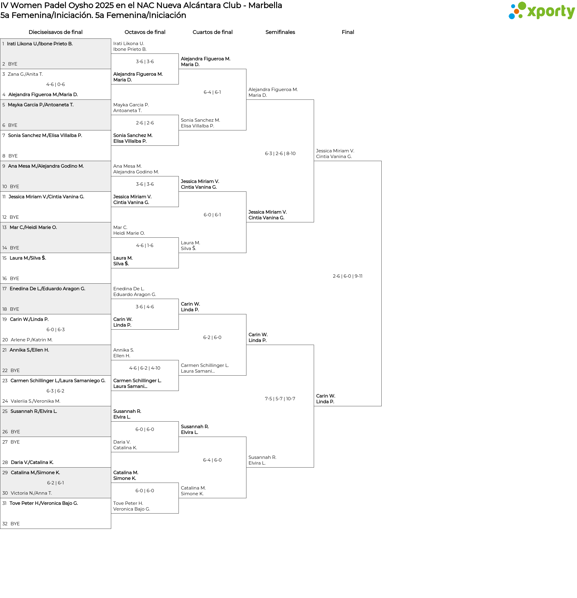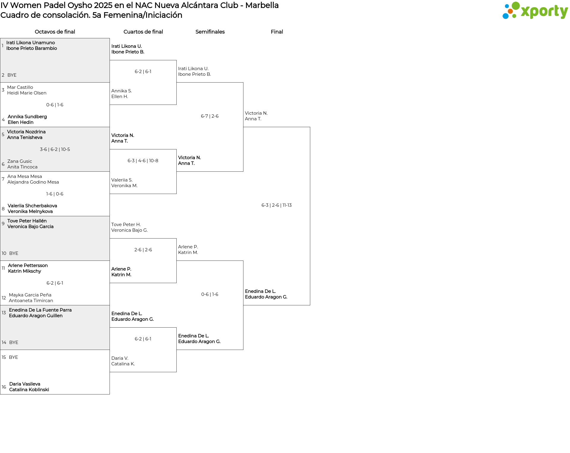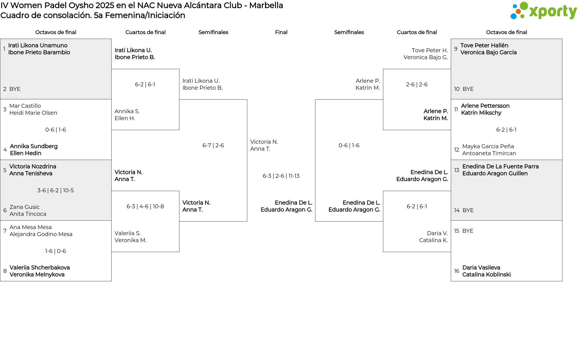 Cuadro de consolación 5a Femenina/Iniciación
