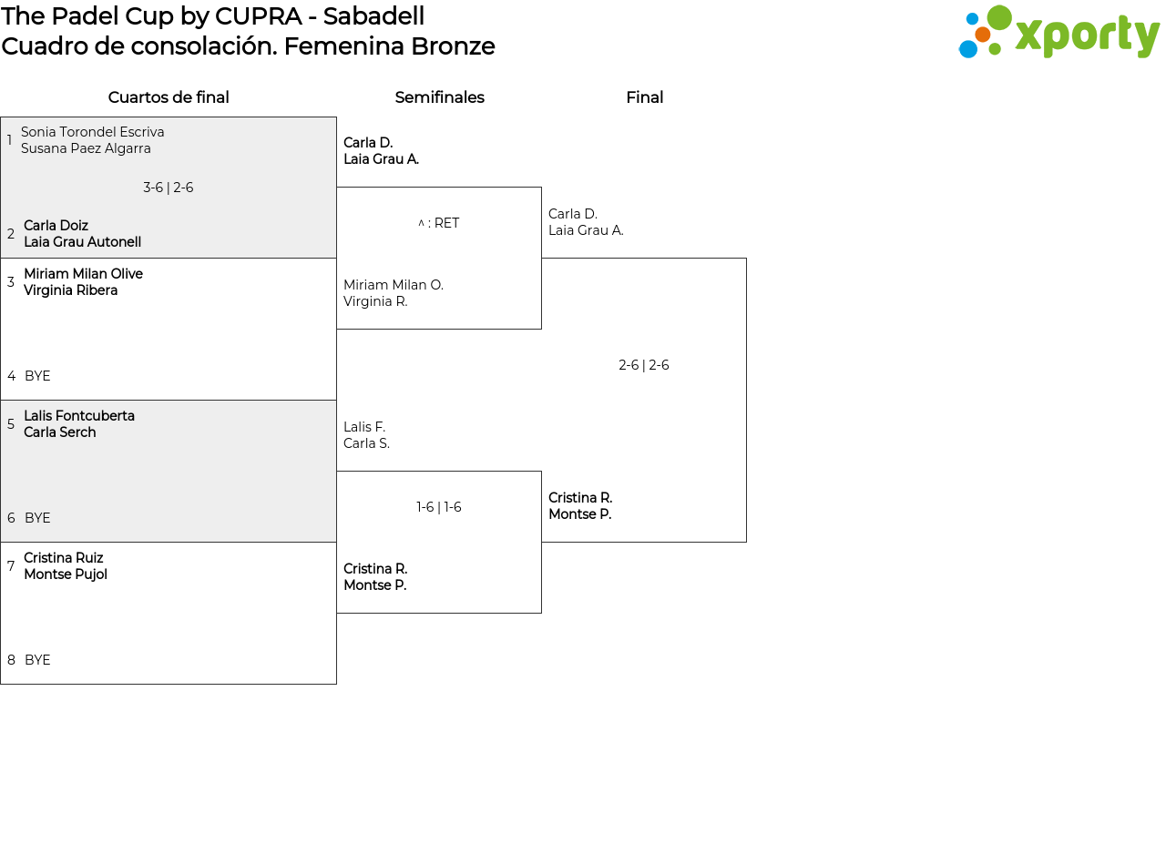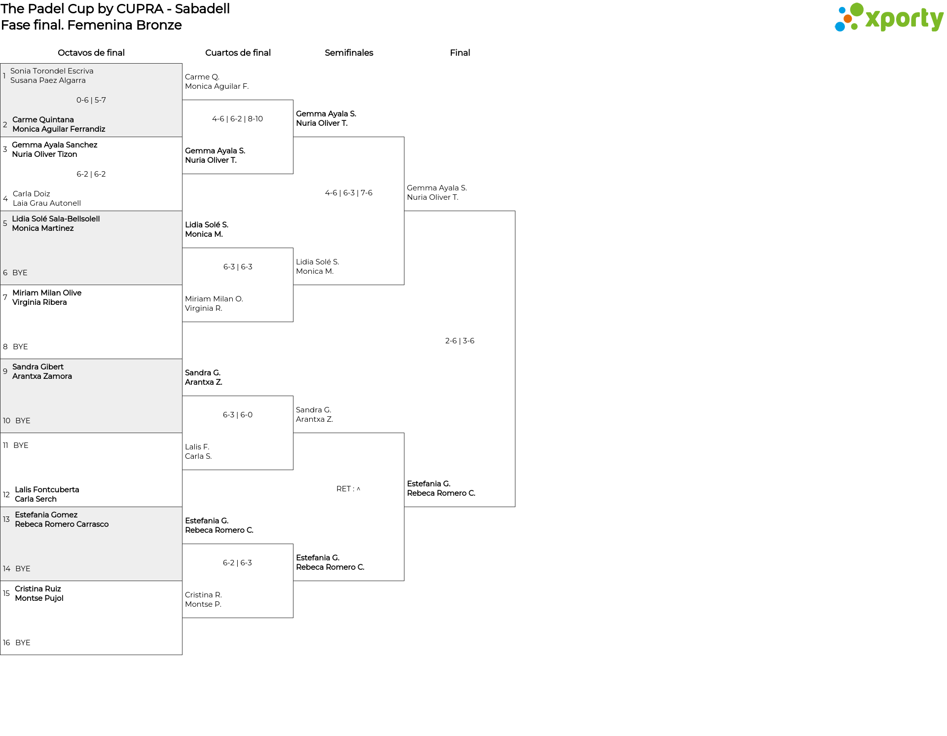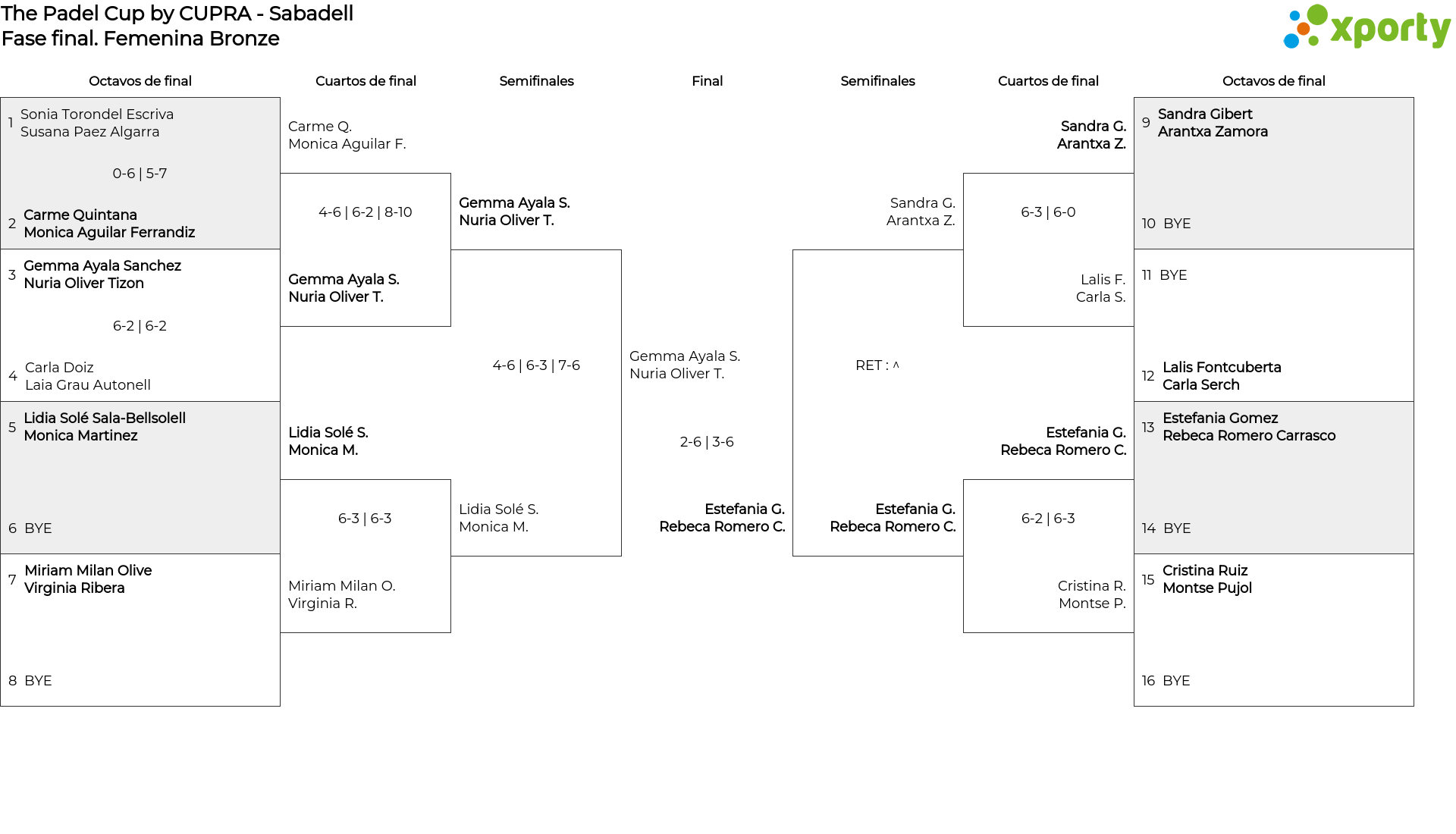 Cuadro principal Femenina Bronze