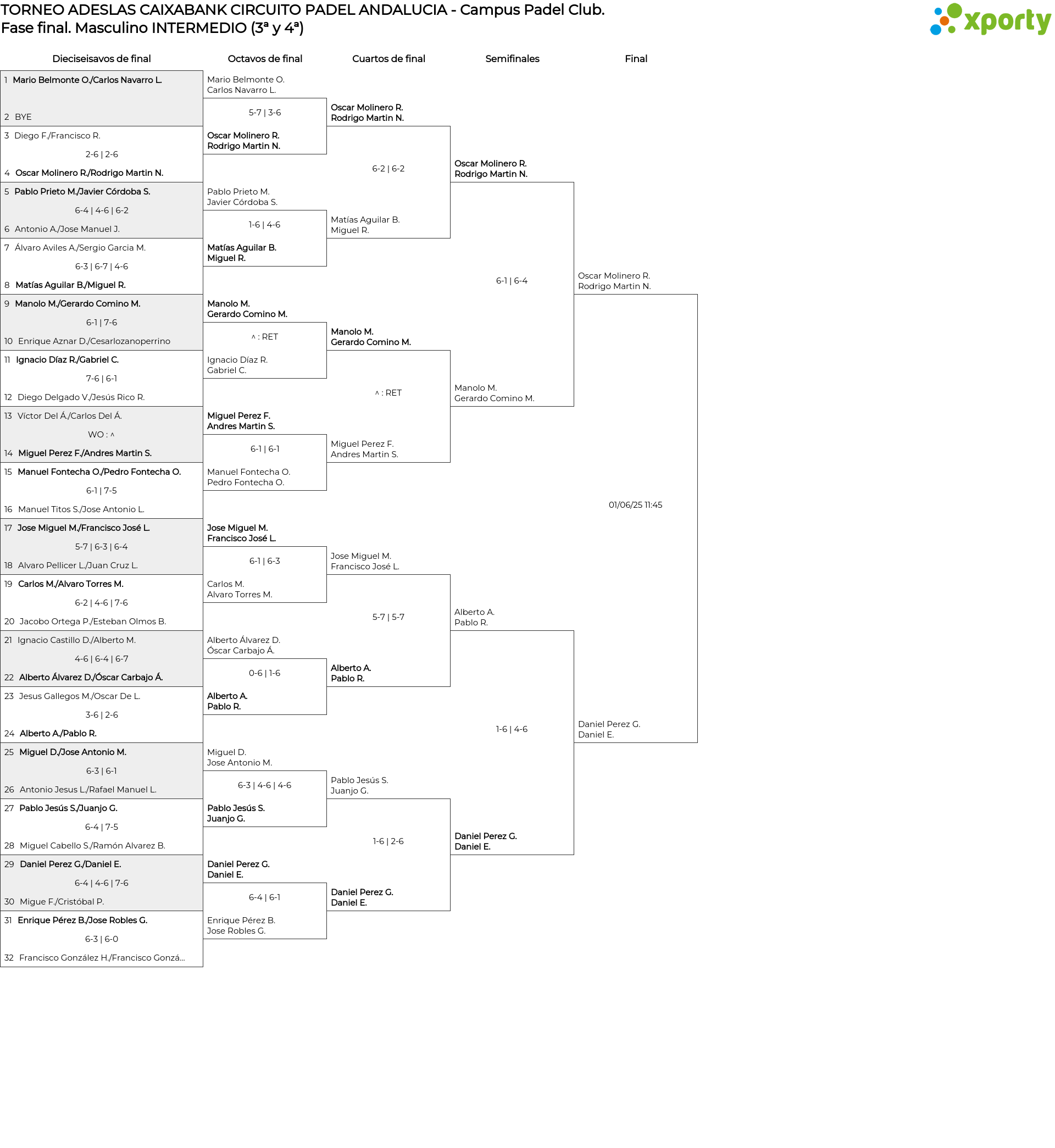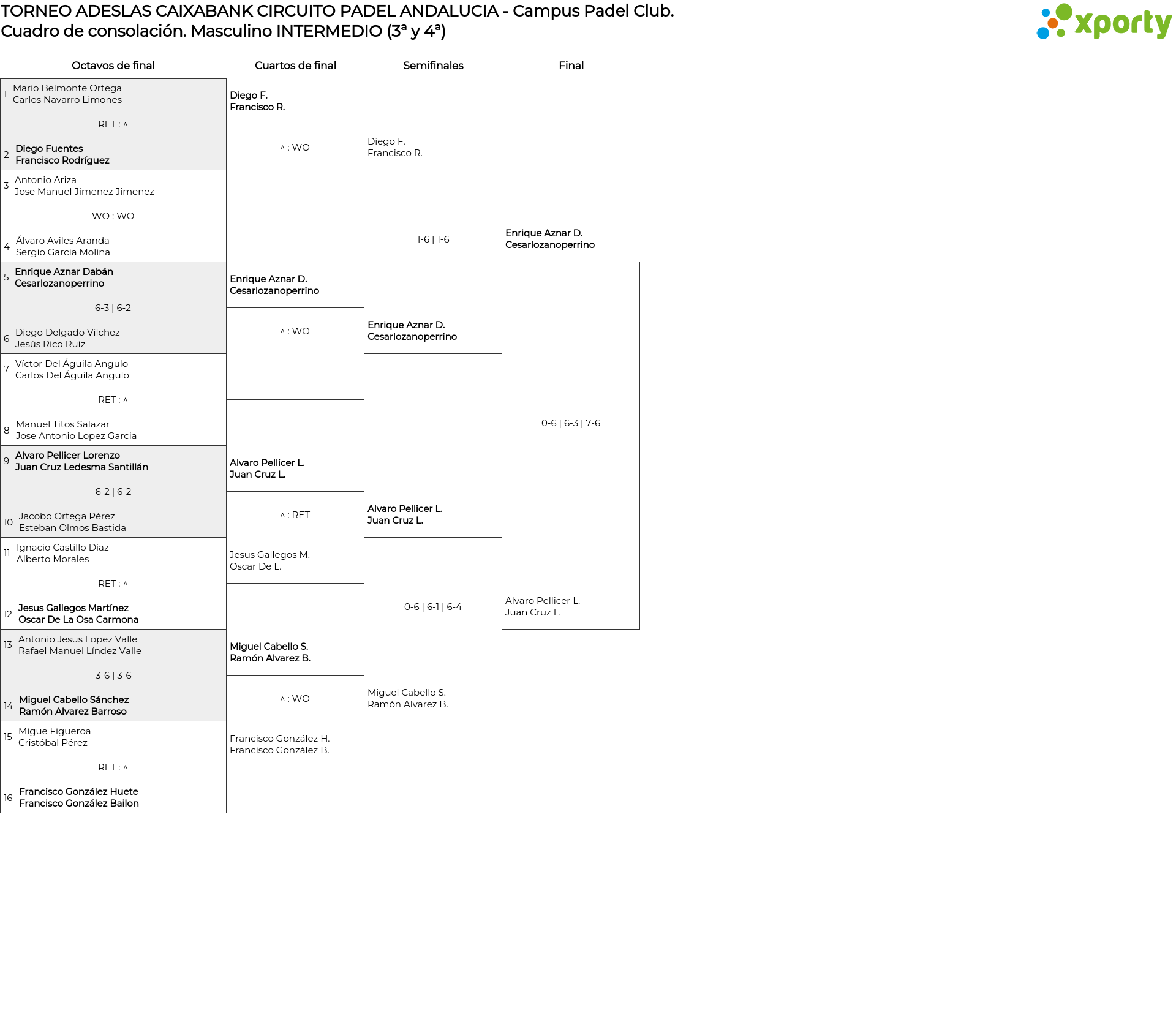 Cuadro de consolación Masculino INTERMEDIO (3ª y 4ª)