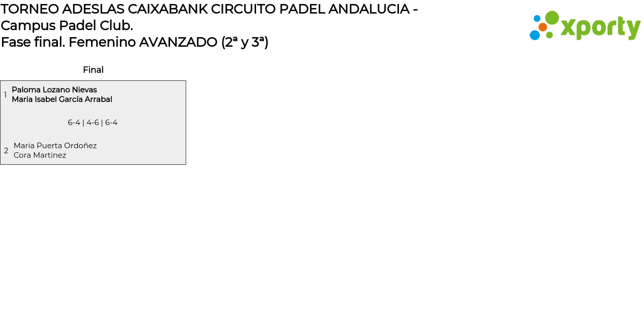 Cuadro principal Femenino AVANZADO (2ª y 3ª)