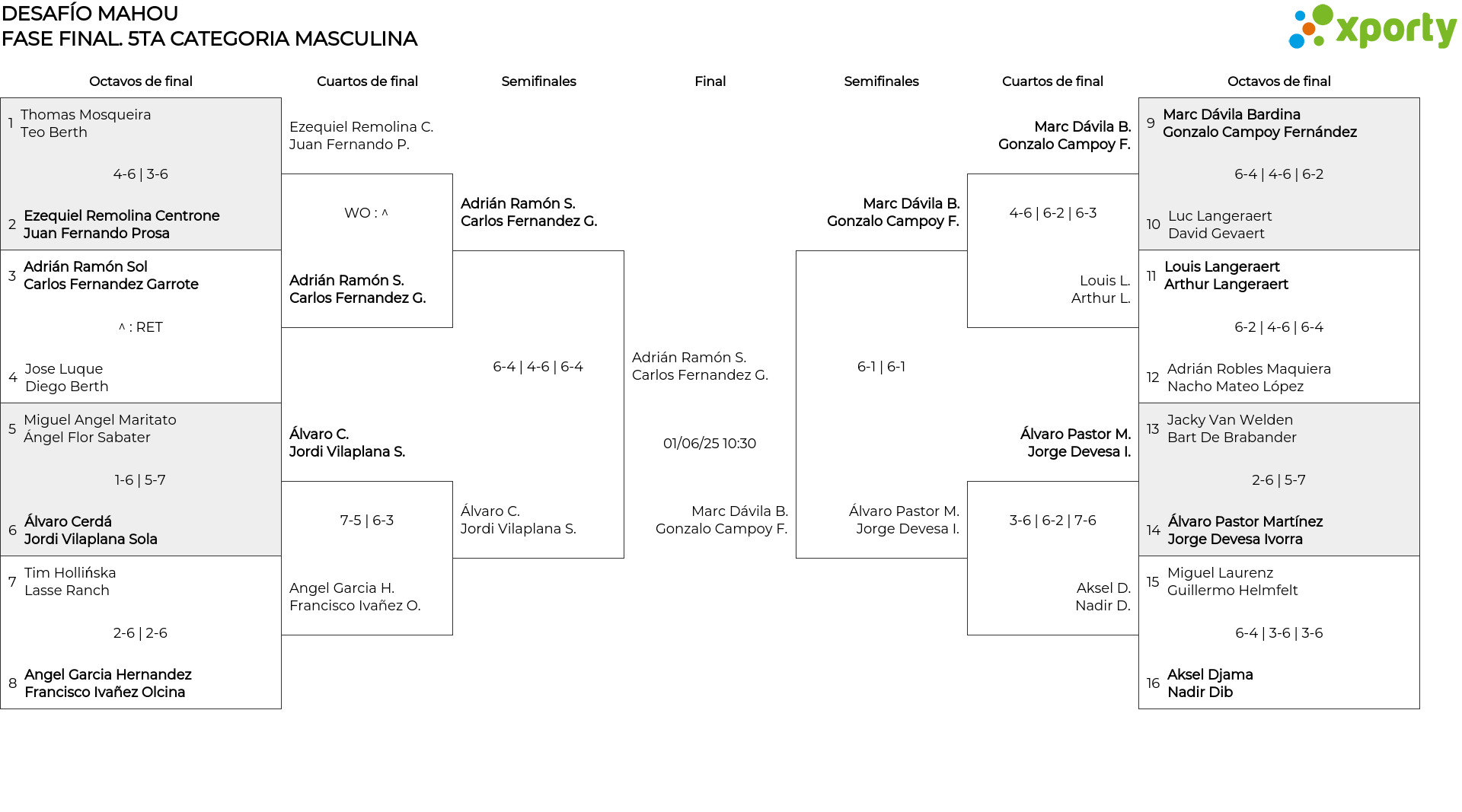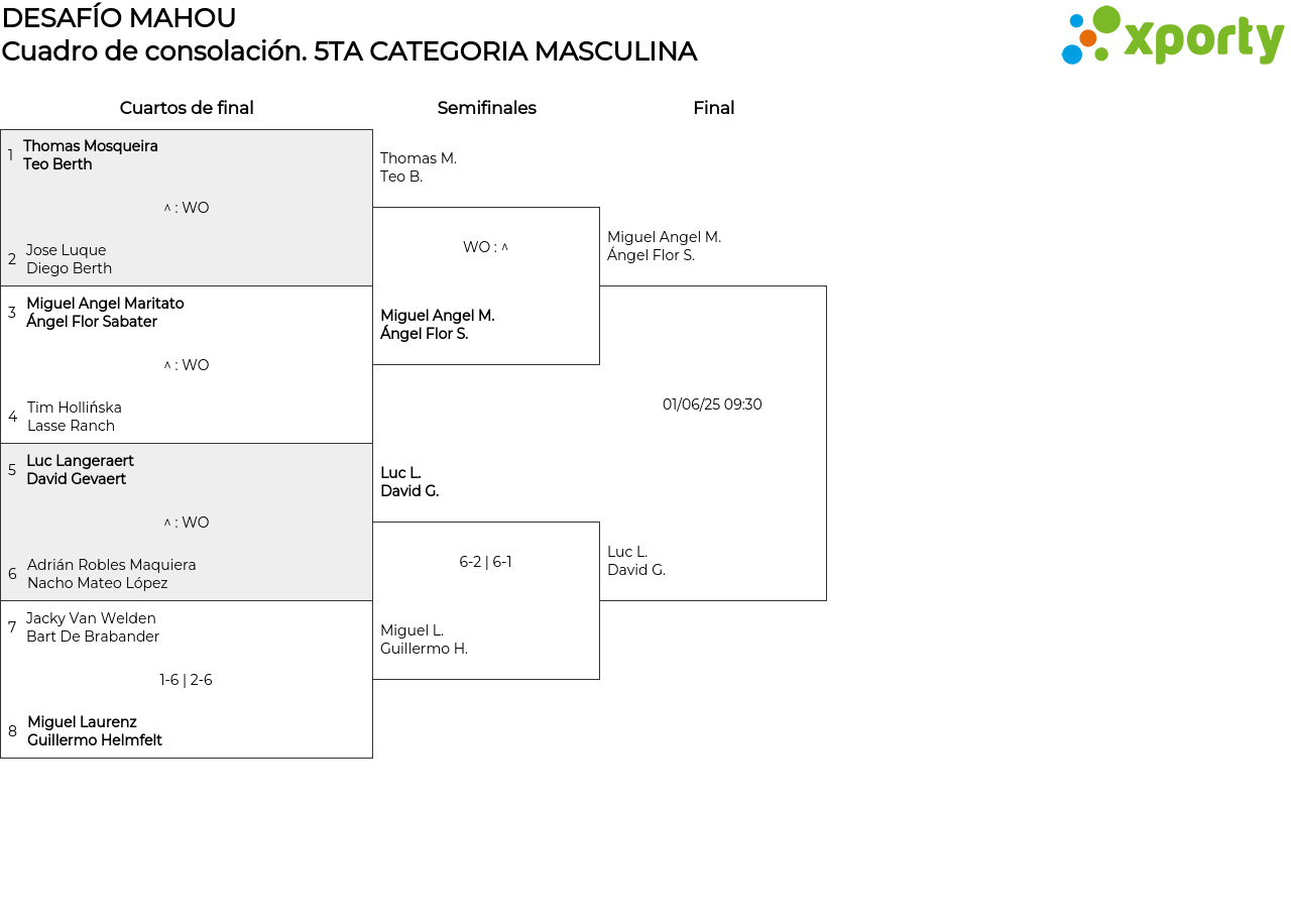 Cuadro de consolación 5TA CATEGORIA MASCULINA