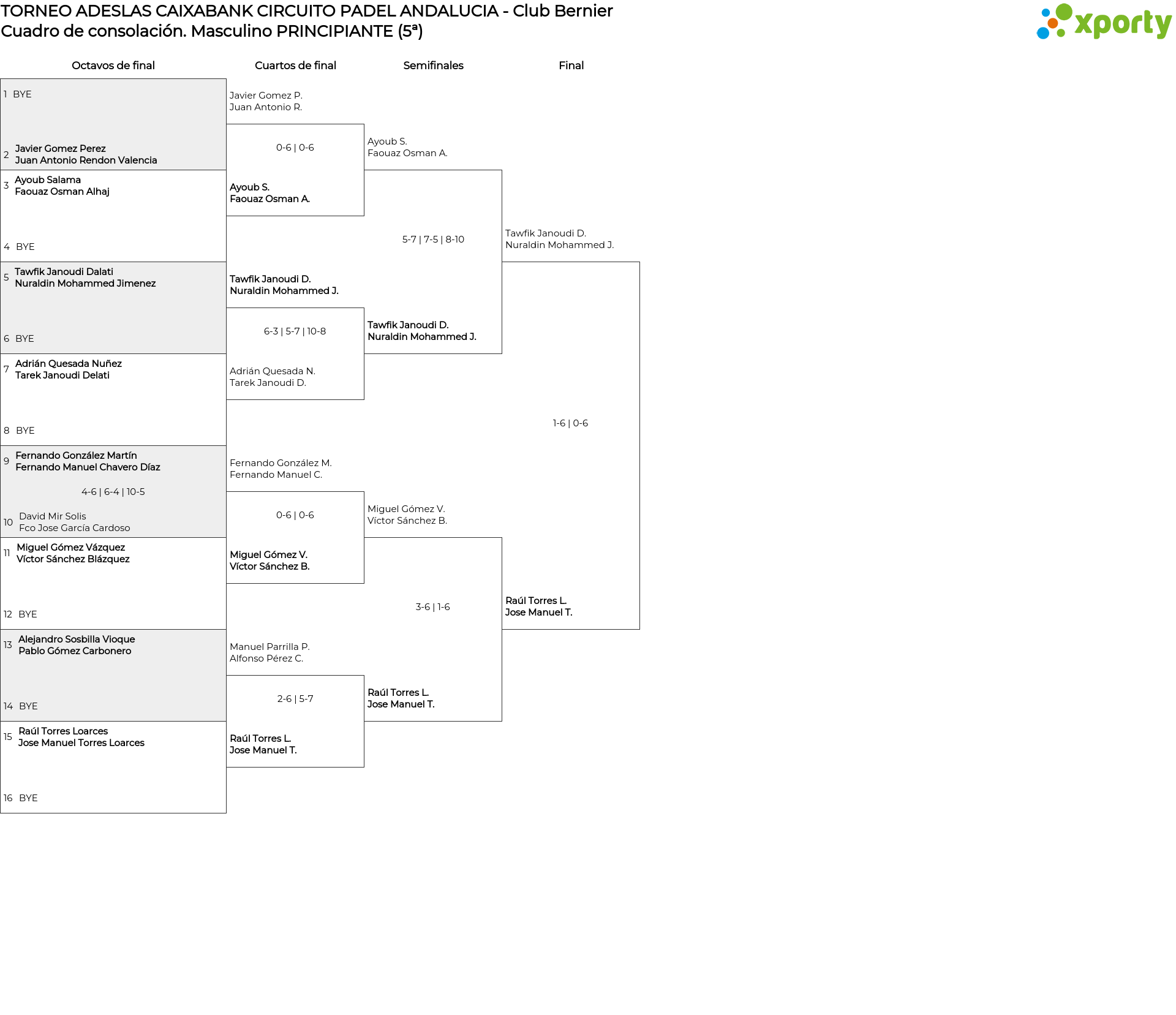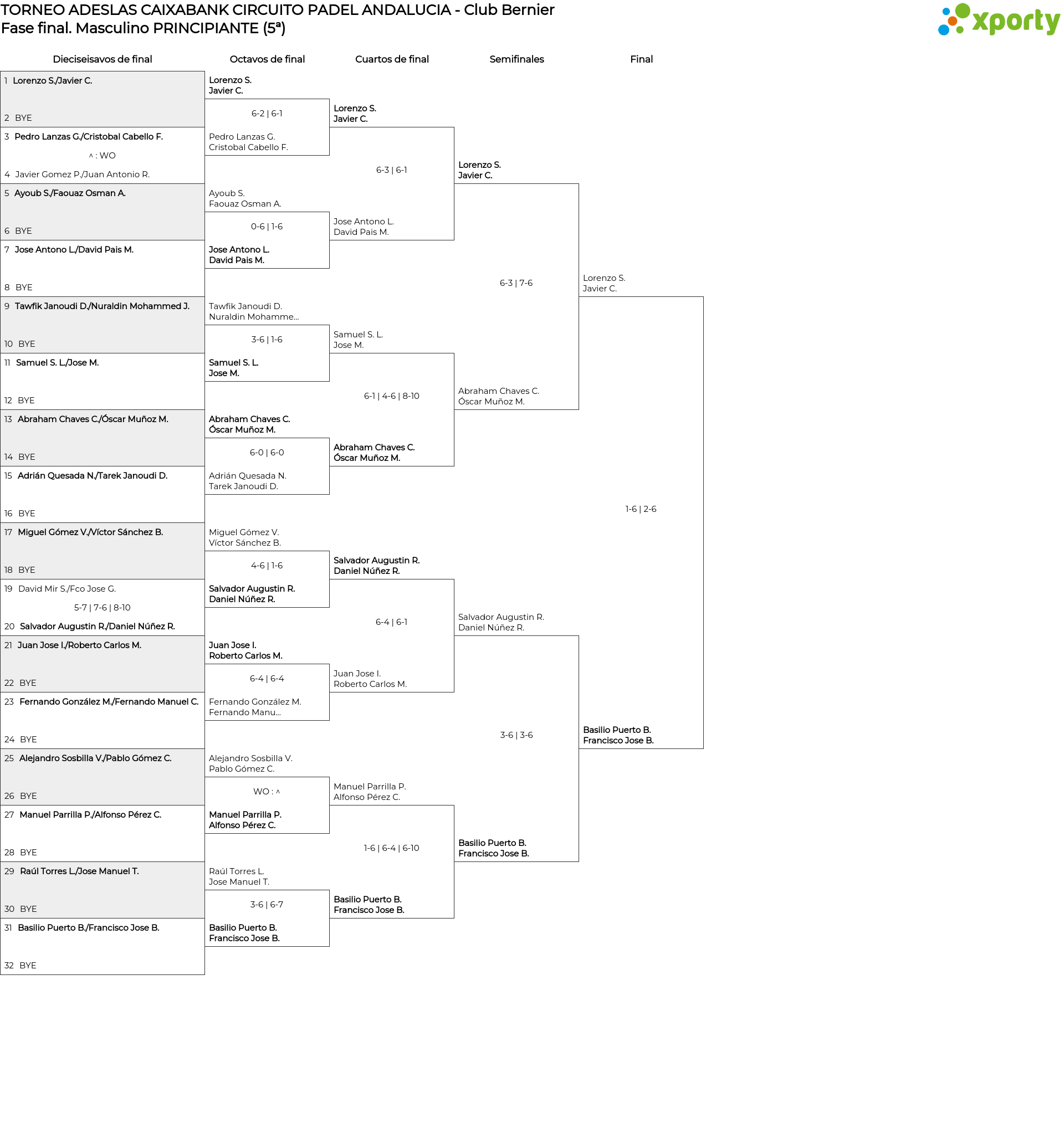 Cuadro principal Masculino PRINCIPIANTE (5ª)