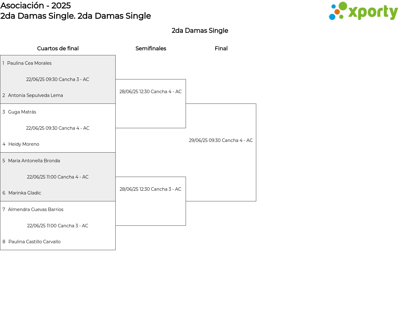 Cuadro principal 2da Damas Single