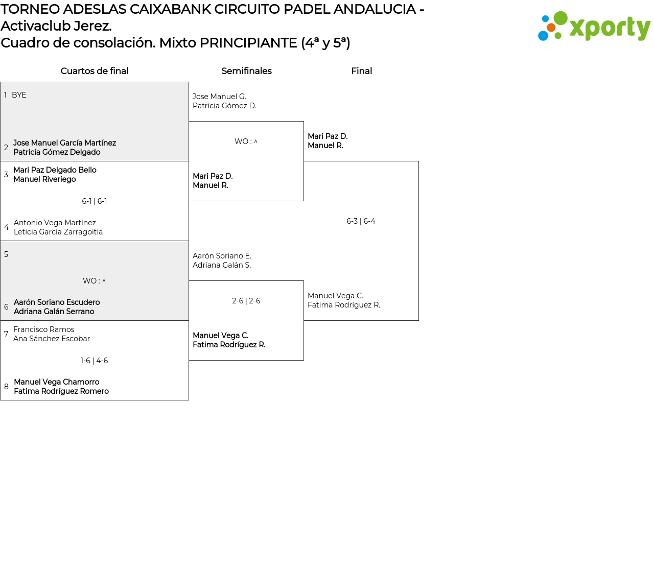 Cuadro de consolación Mixto PRINCIPIANTE (4ª y 5ª)