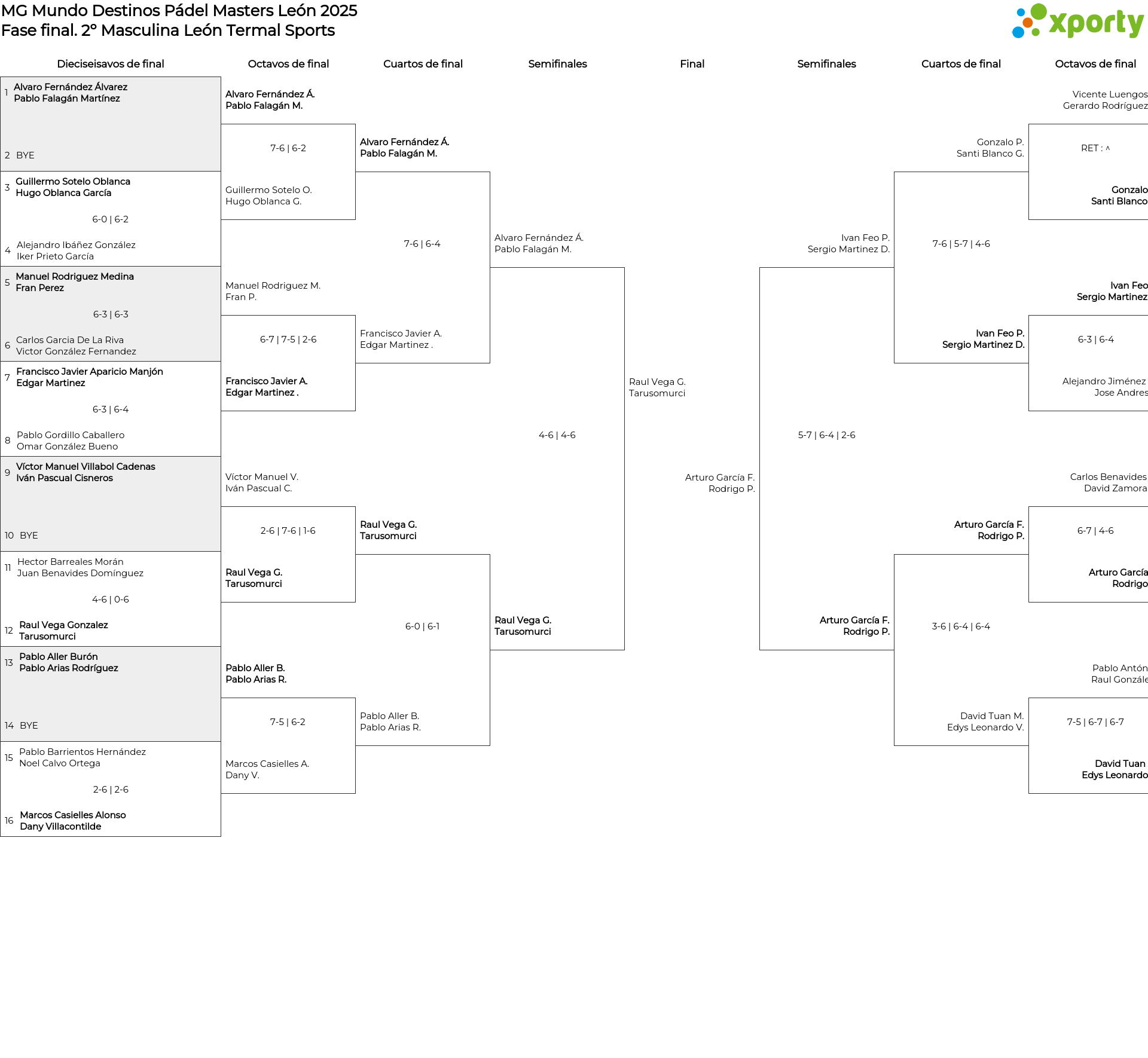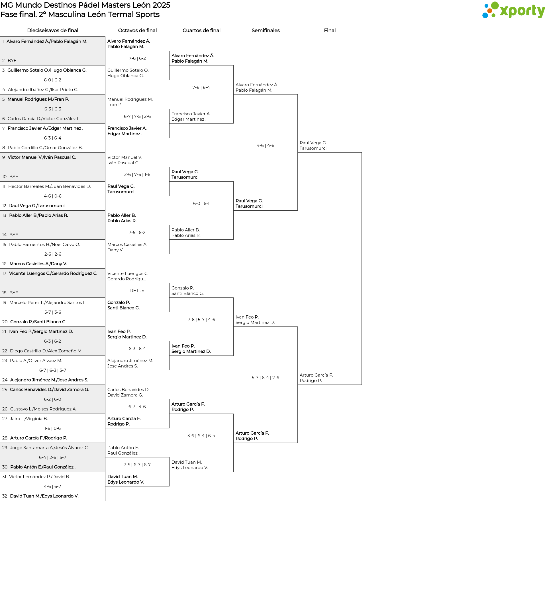 Cuadro principal 2º Masculina León Termal Sports
