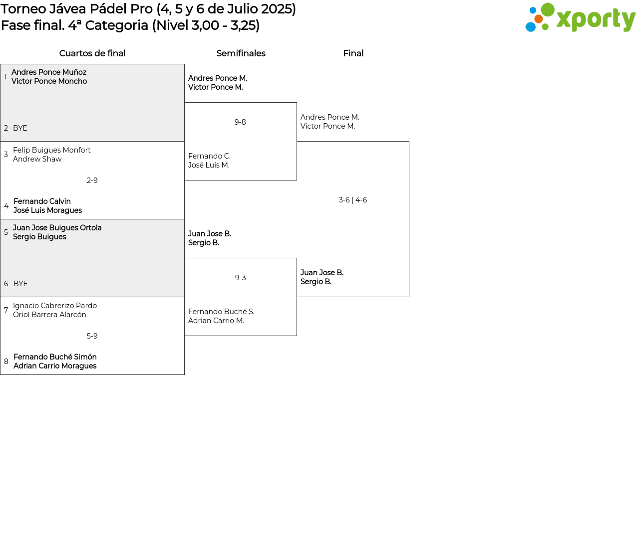 Cuadro principal 4ª Categoria (Nivel 3,00 - 3,25)