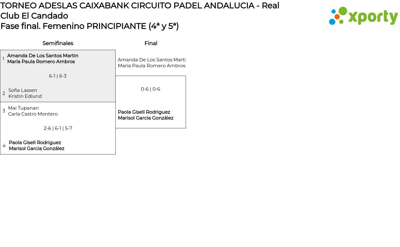 Cuadro principal Femenino PRINCIPIANTE (4ª y 5ª)