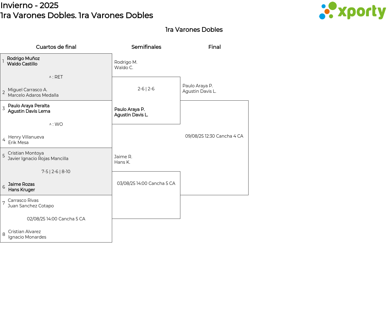 sábado, 2 de agosto de 2025 14:00 . Cancha 5 CA