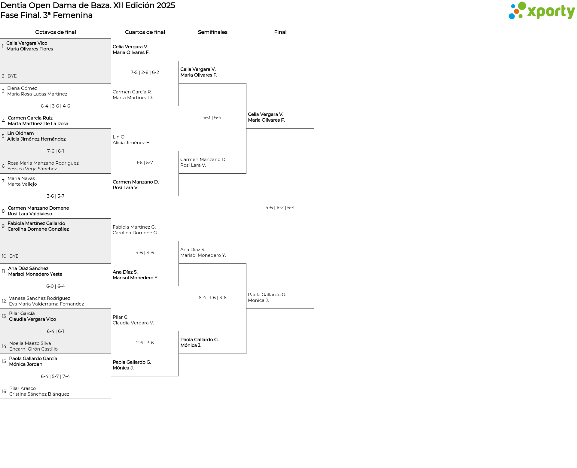 Cuadro de consolación 3ª Femenina