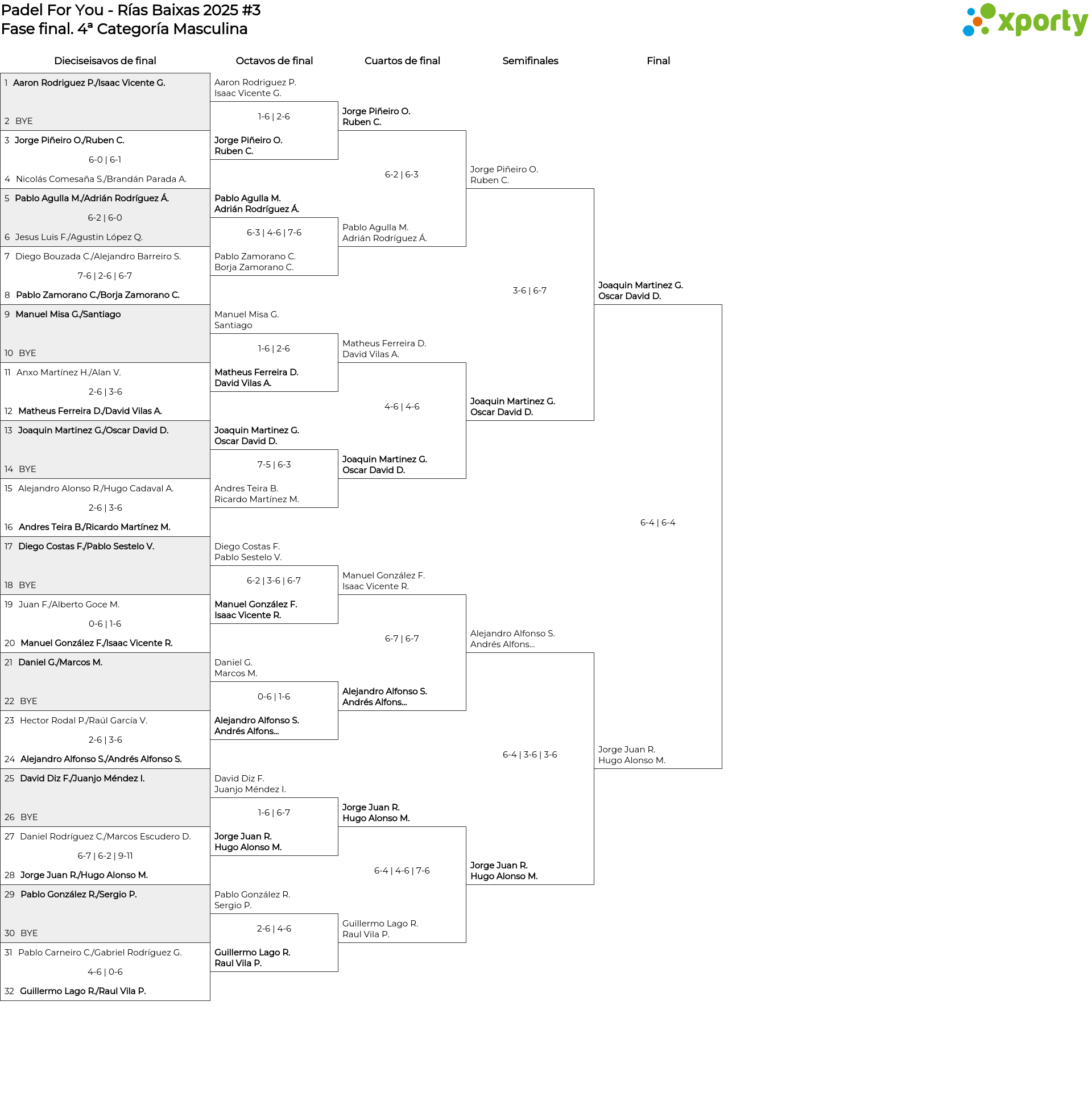 Cuadro de consolación 4ª Categoría Masculina