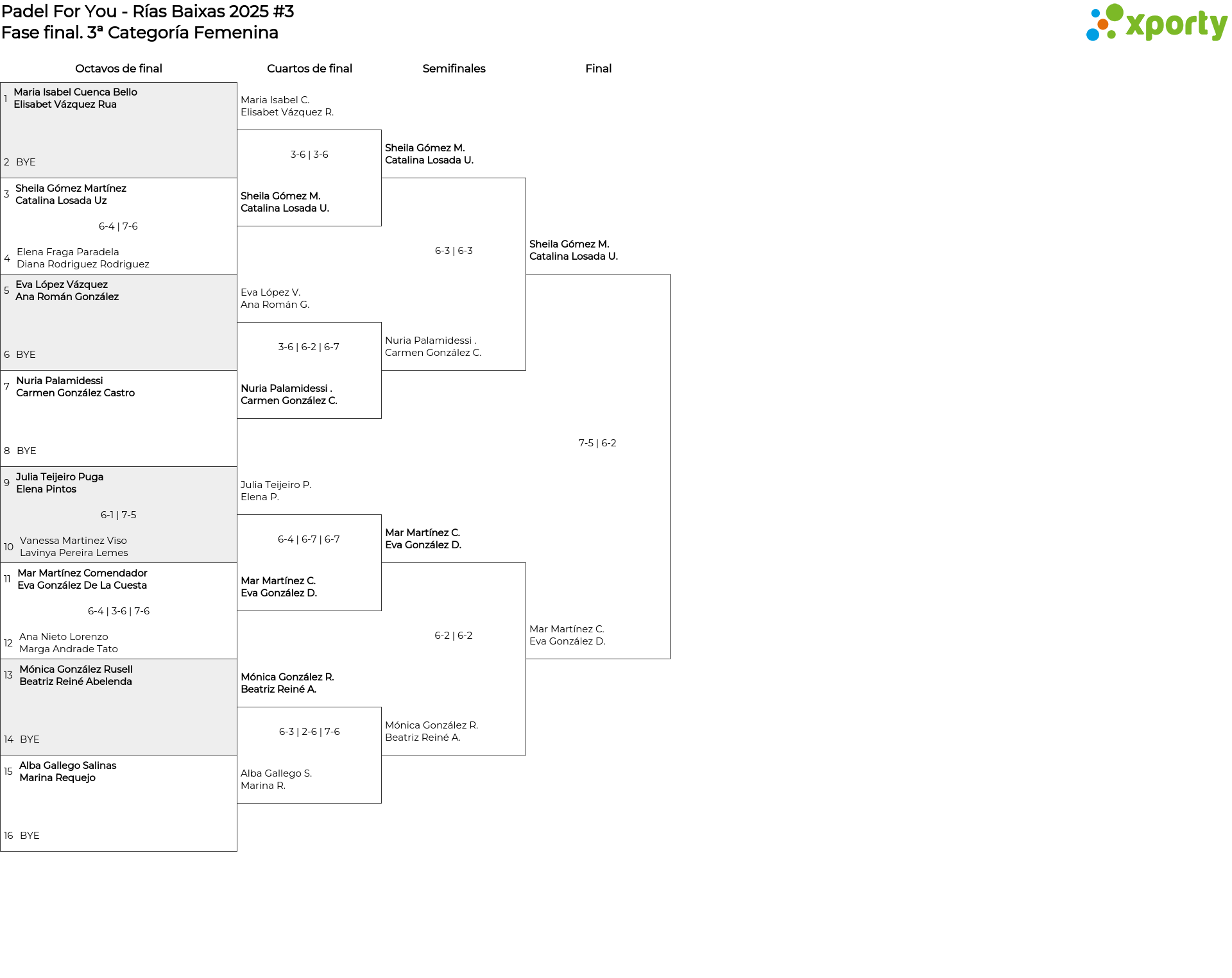 Cuadro principal 3ª Categoría Femenina