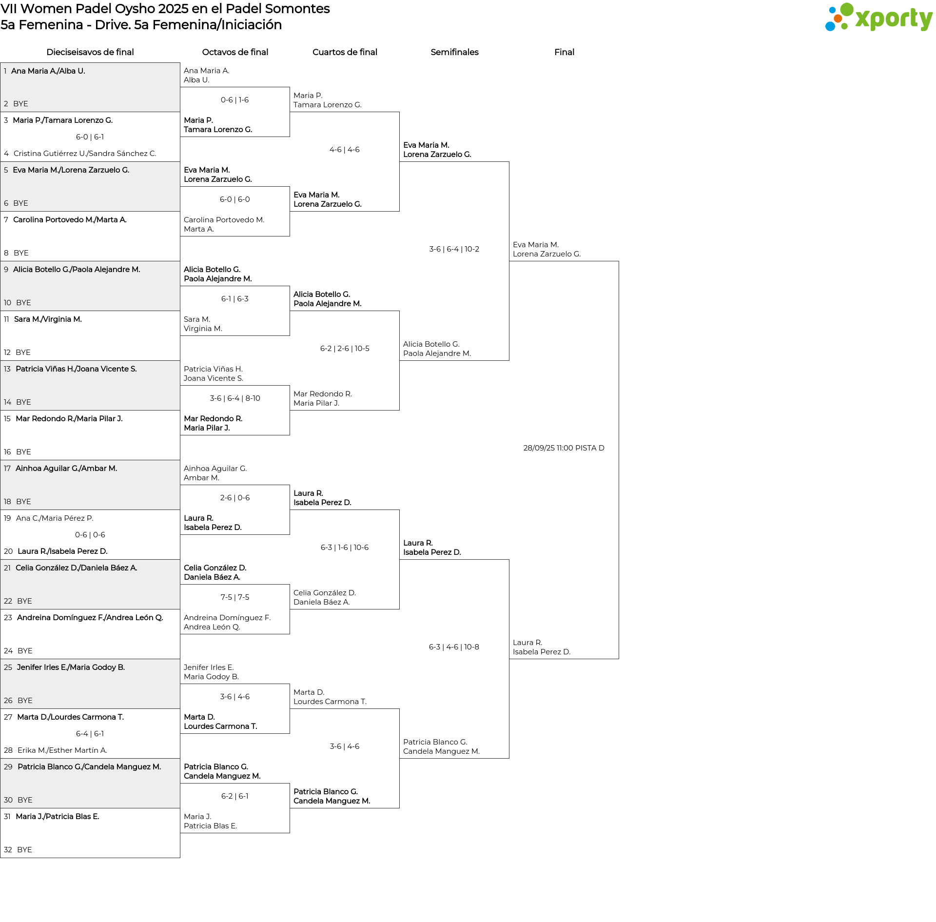 Cuadro principal 5a Femenina/Iniciación
