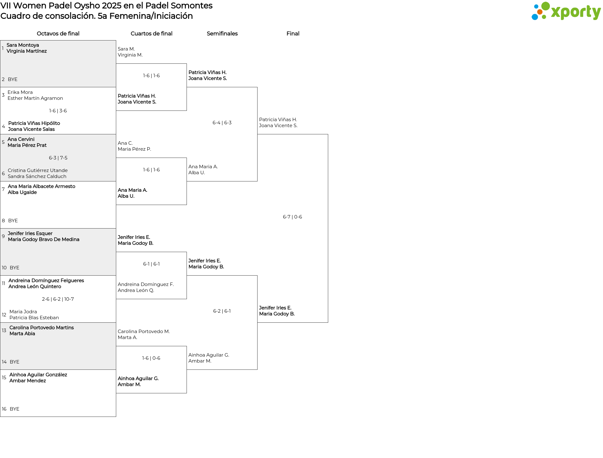 Cuadro de consolación 5a Femenina/Iniciación