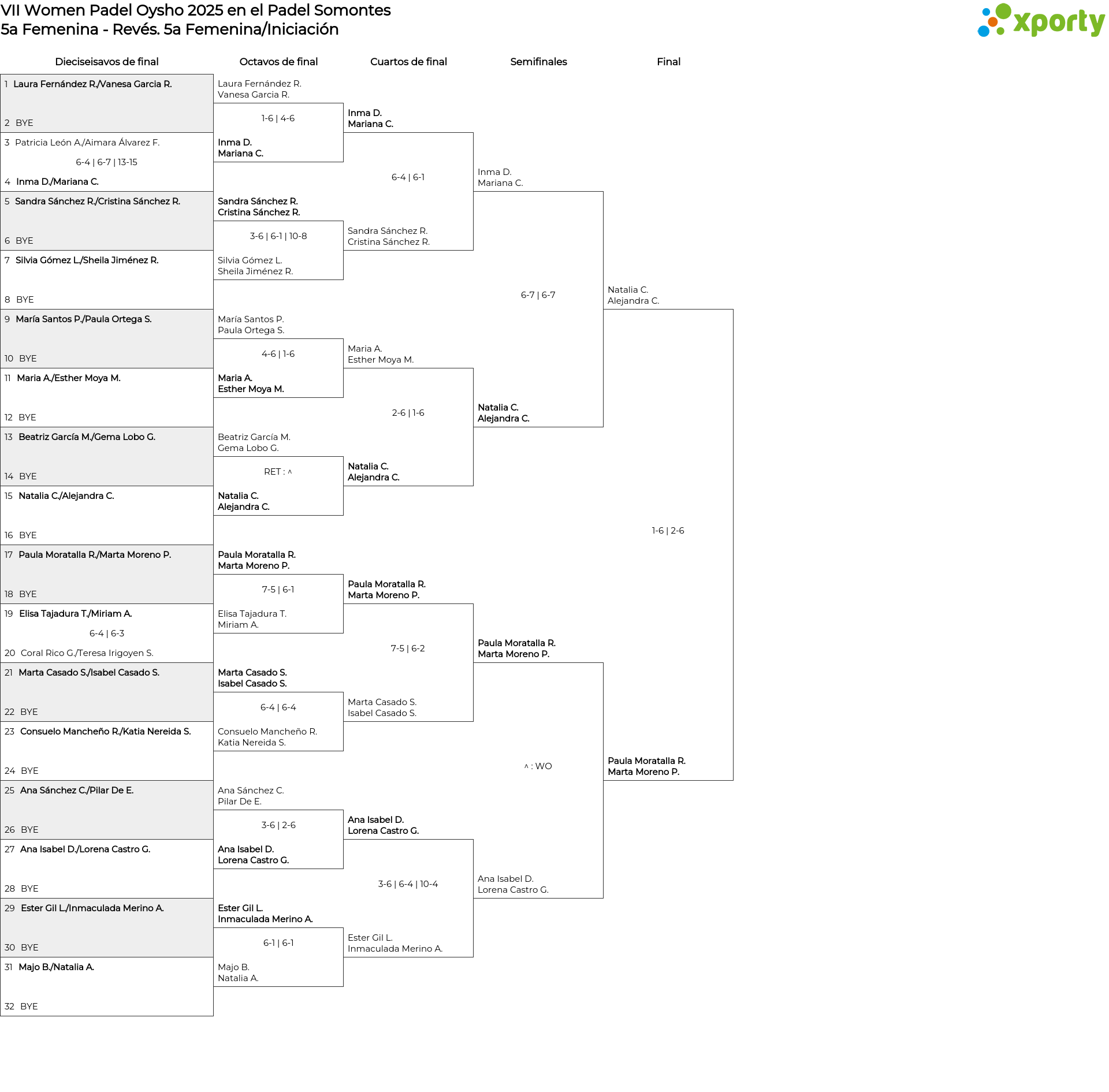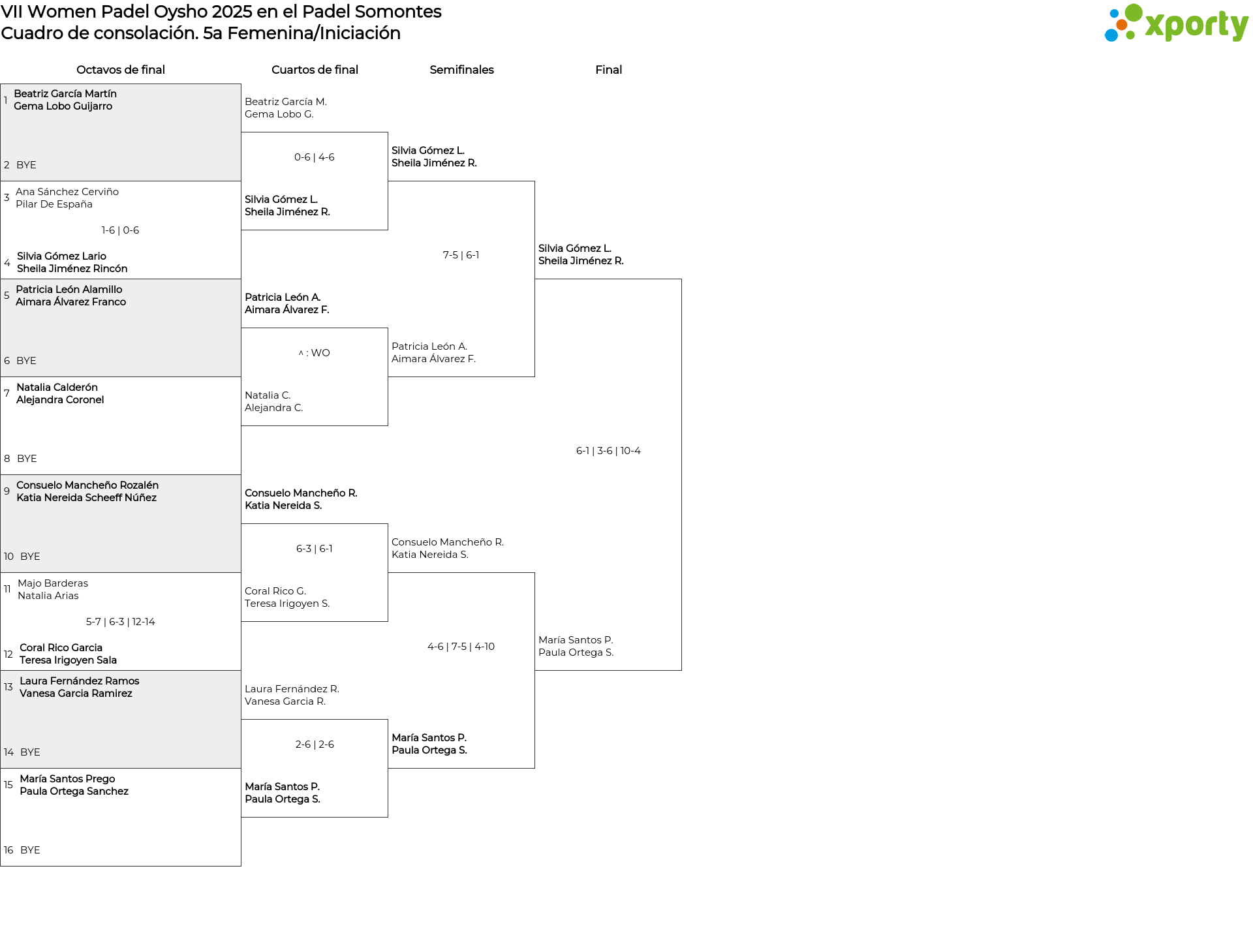 Cuadro de consolación 5a Femenina/Iniciación