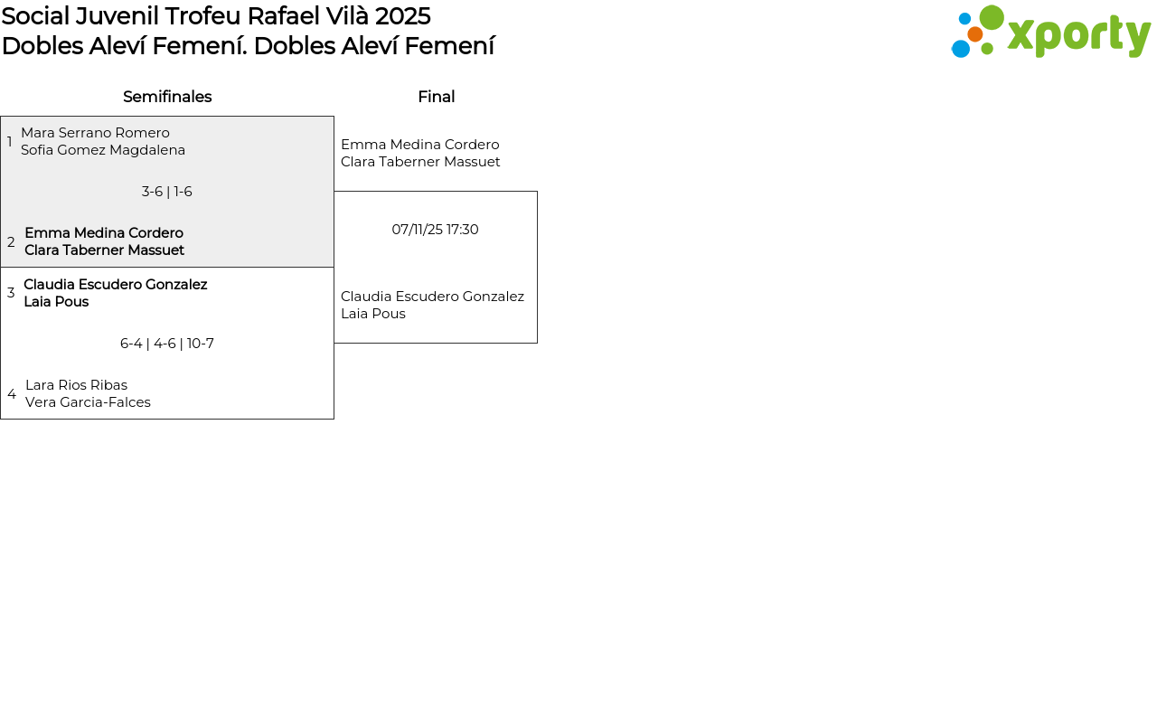 Cuadro principal Dobles Aleví Femení