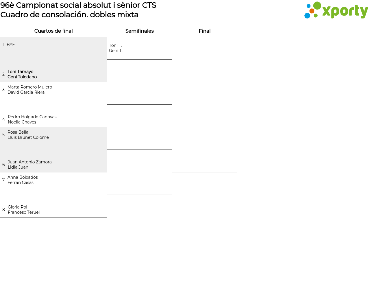 Cuadro de consolación dobles mixta