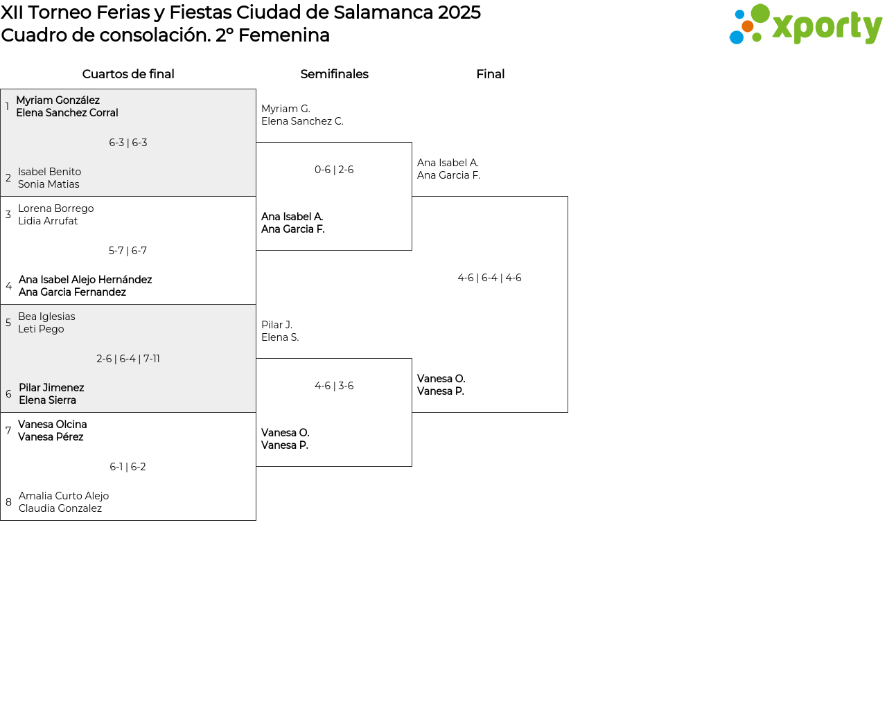 Cuadro de consolación 2º Femenina