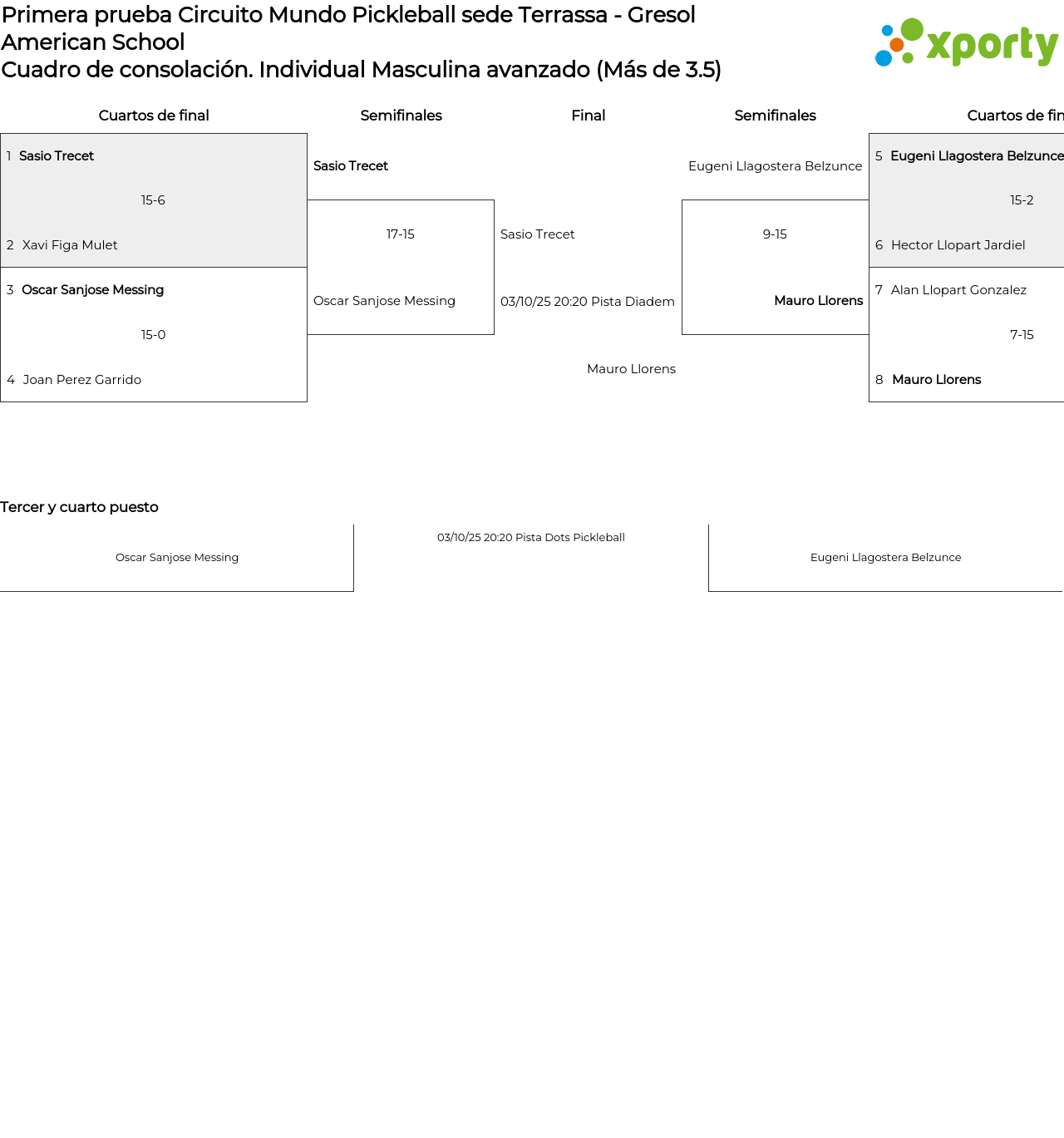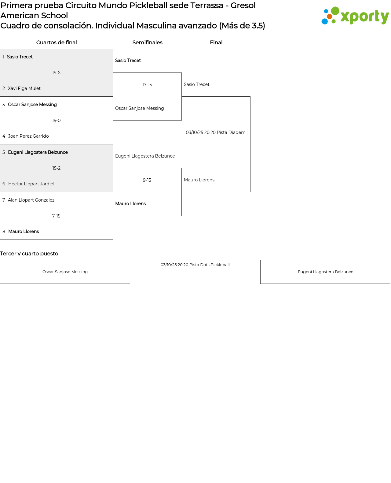 viernes, 3 de octubre de 2025 19:20 . Pista Mundo Pickleball