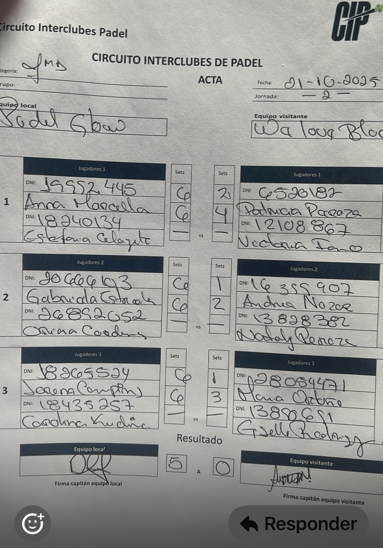 Imprimir acta del partido