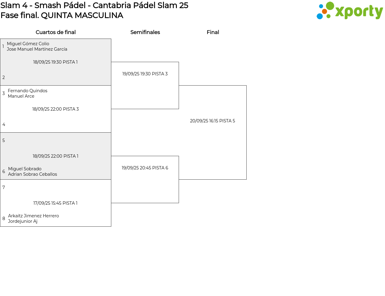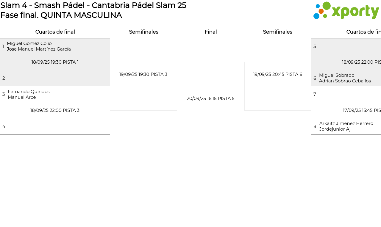 Cuadro principal QUINTA MASCULINA