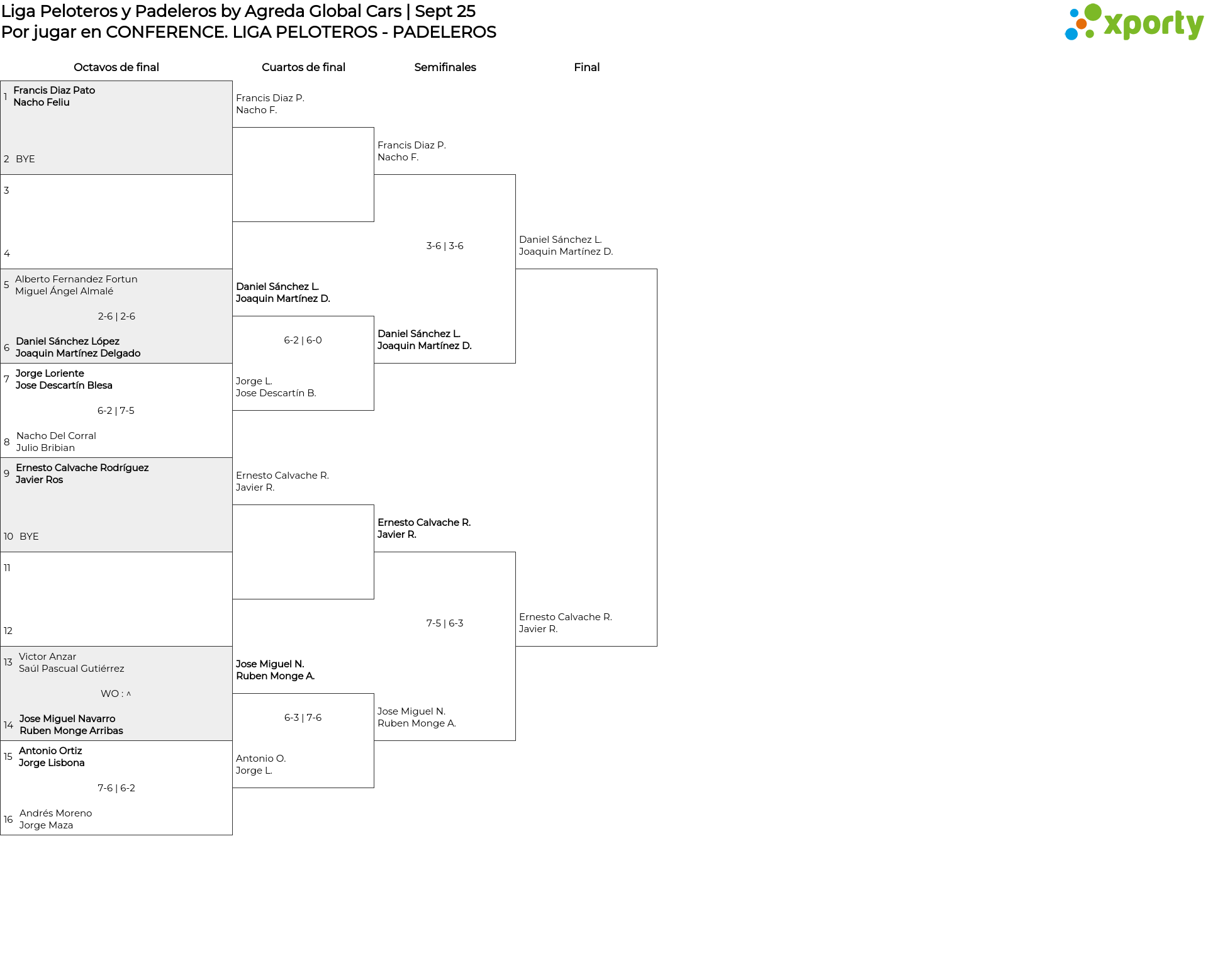Cuadro principal LIGA PELOTEROS - PADELEROS