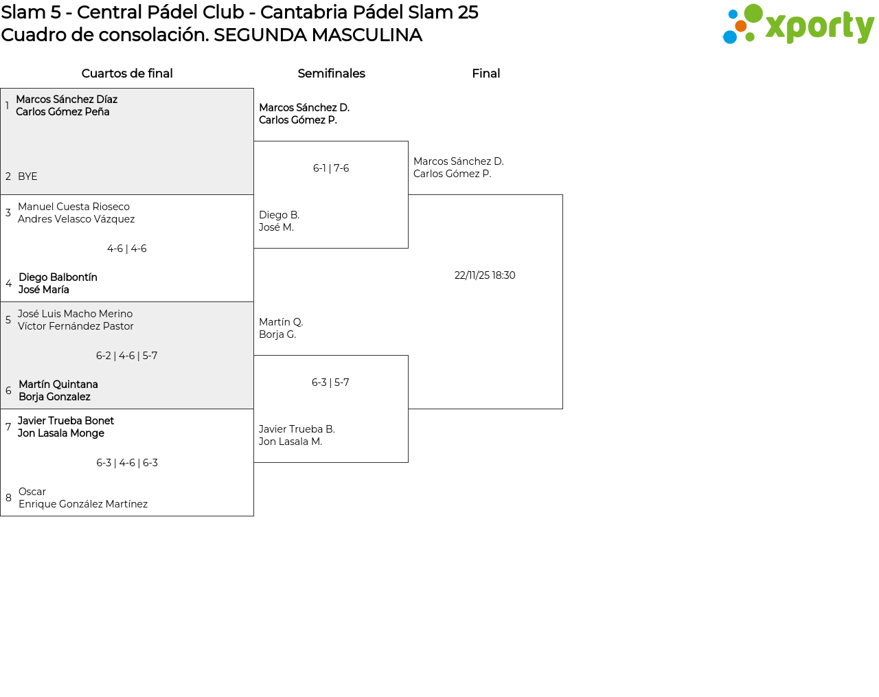 Cuadro de consolación SEGUNDA MASCULINA