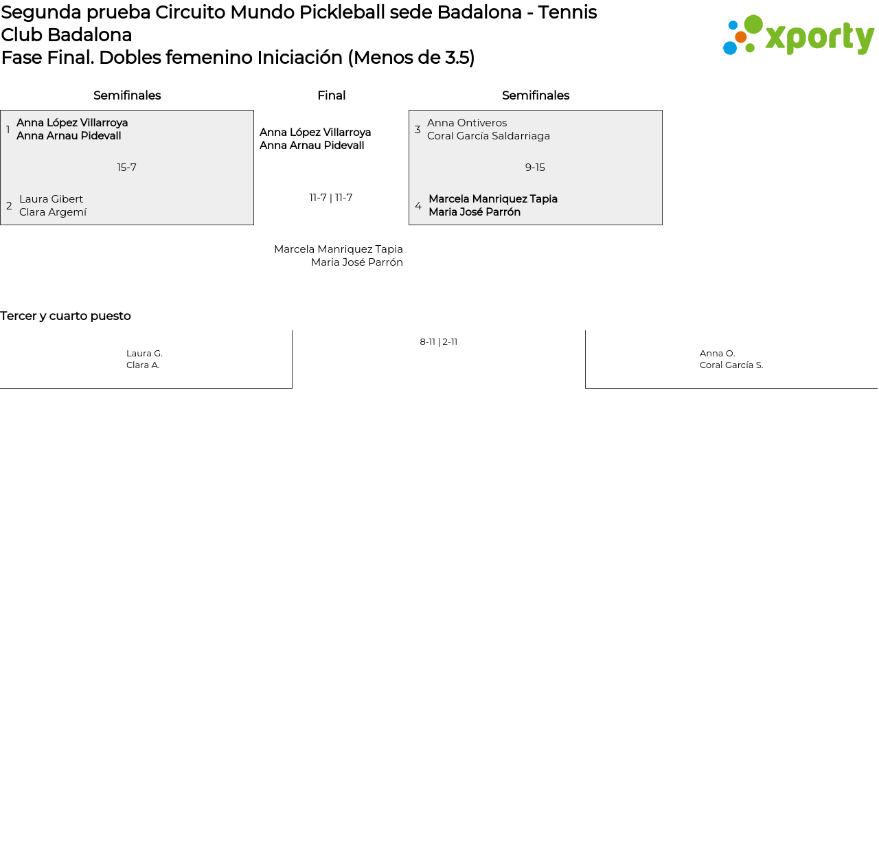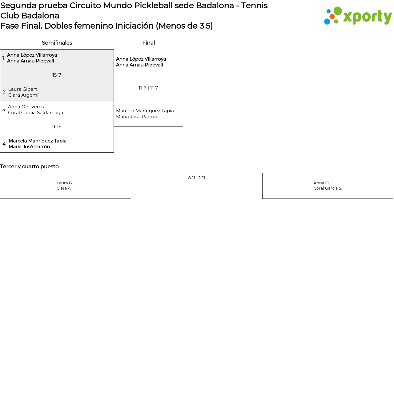 Cuadro principal Dobles femenino Iniciación (Menos de 3.5)