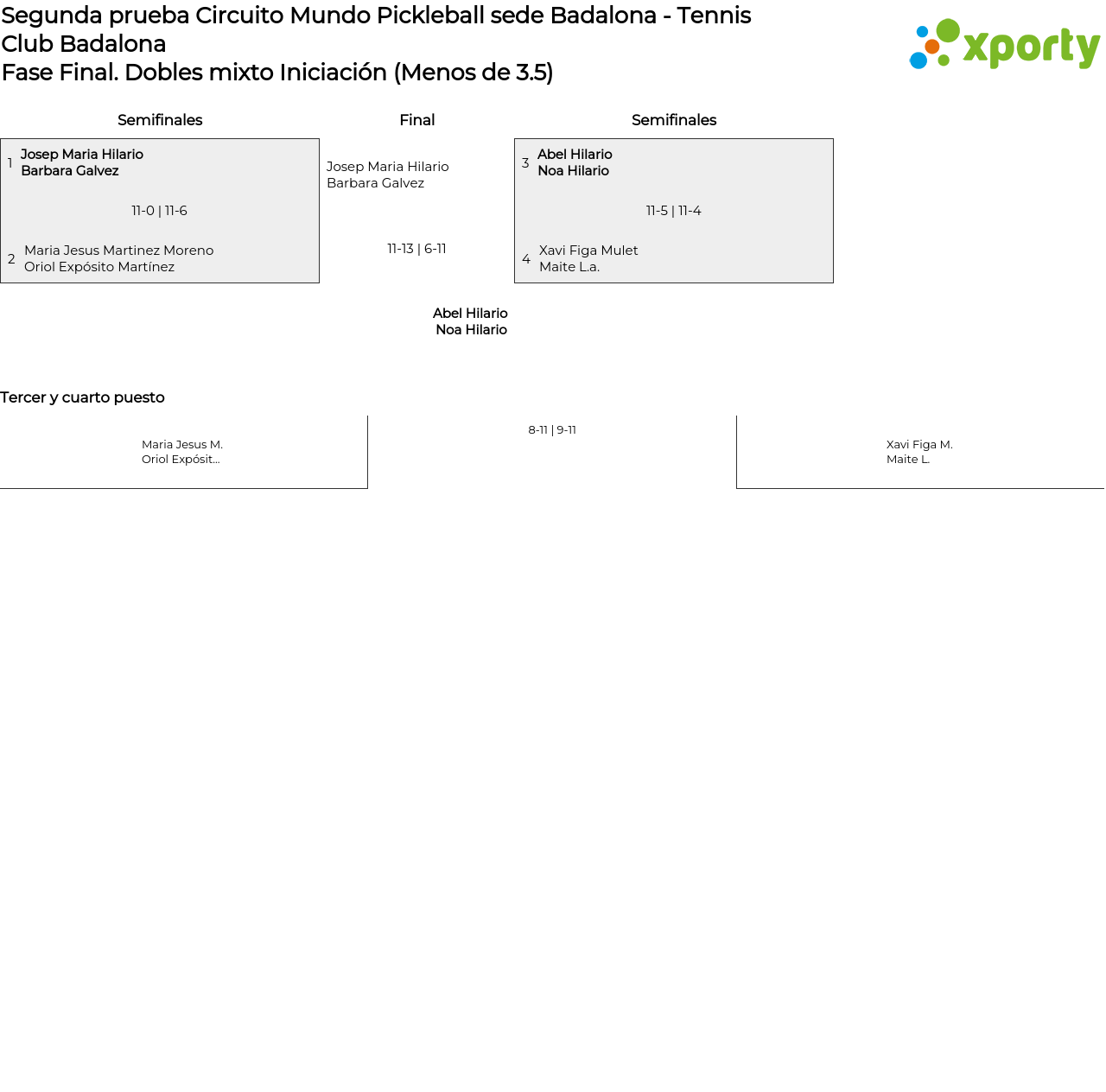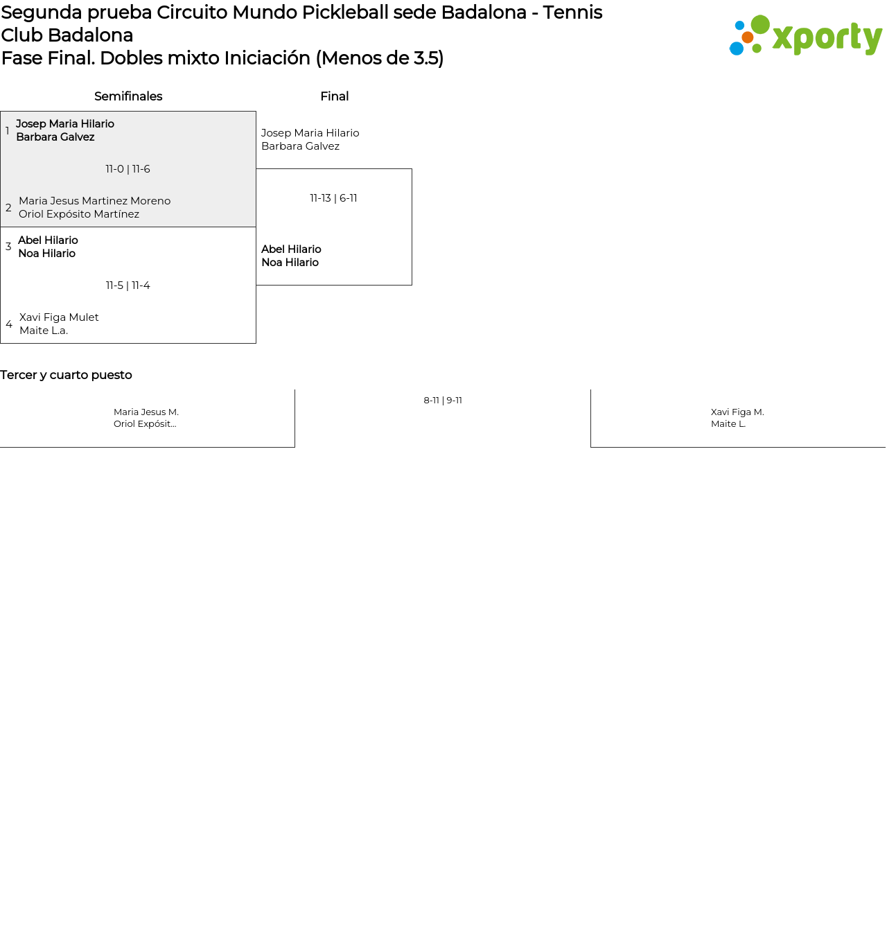 Cuadro principal Dobles mixto Iniciación (Menos de 3.5)