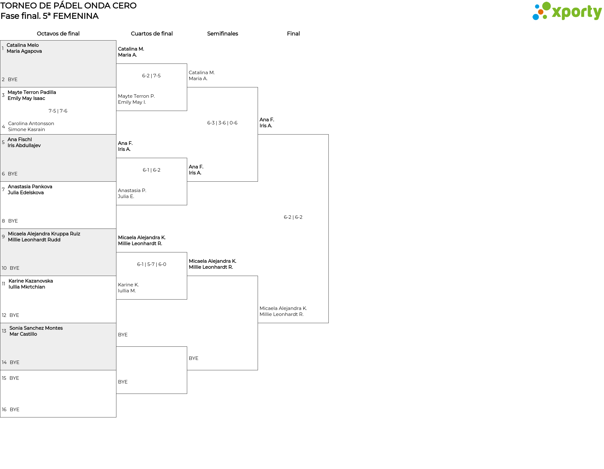 Cuadro principal 5ª FEMENINA