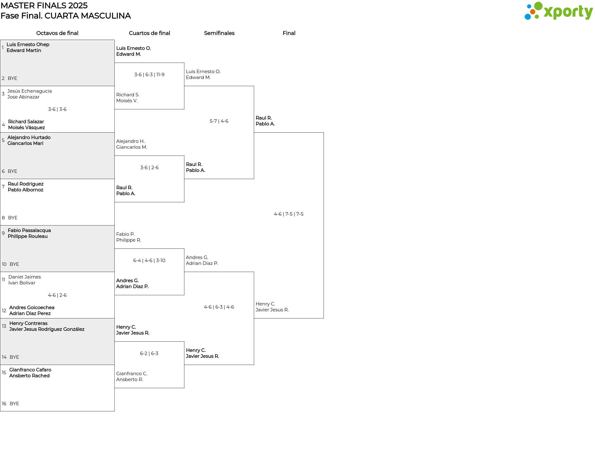 Cuadro principal CUARTA MASCULINA