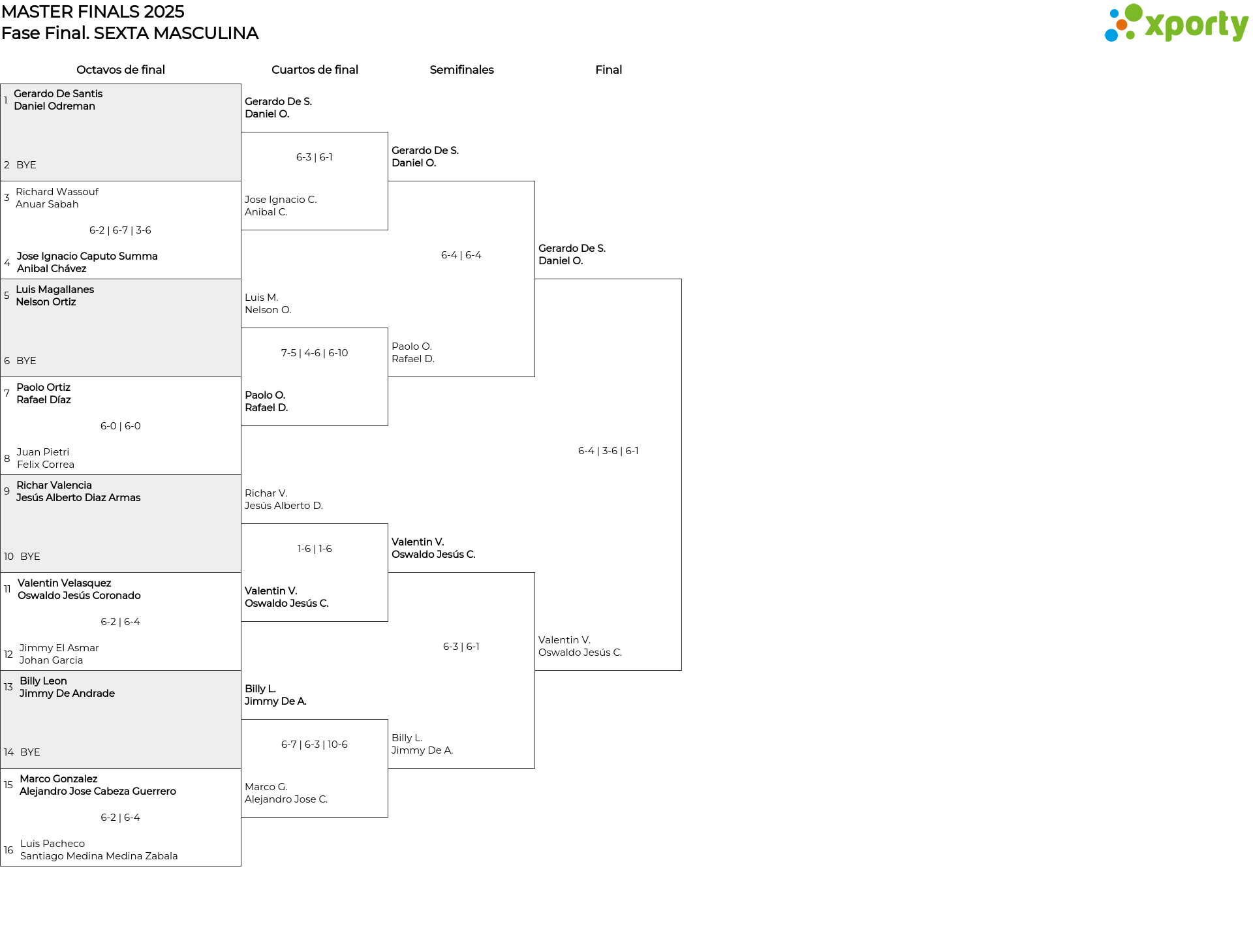 Cuadro principal SEXTA MASCULINA