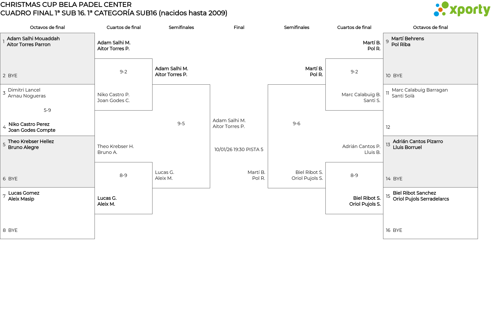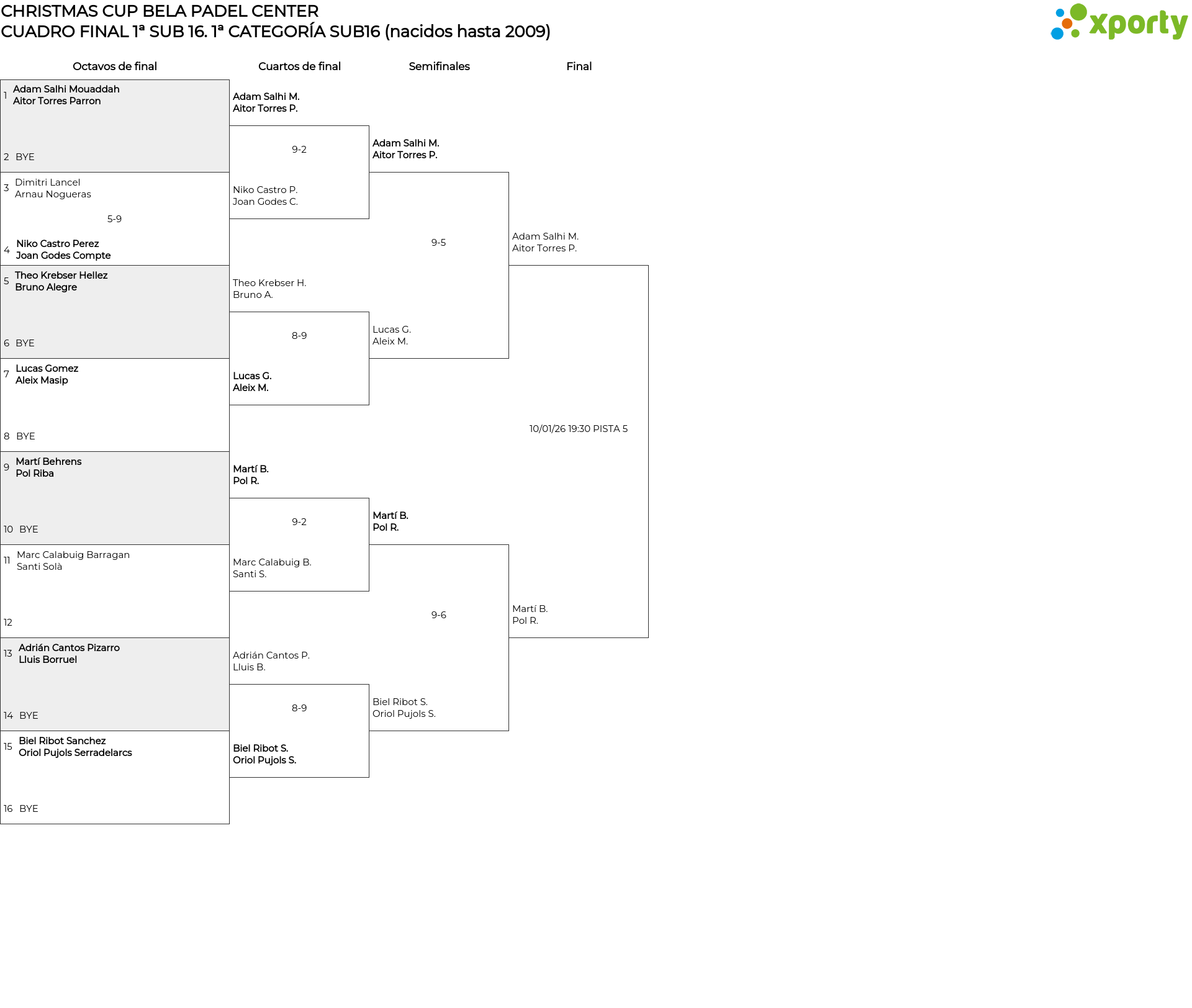 CUADRO FINAL 1ª SUB 16