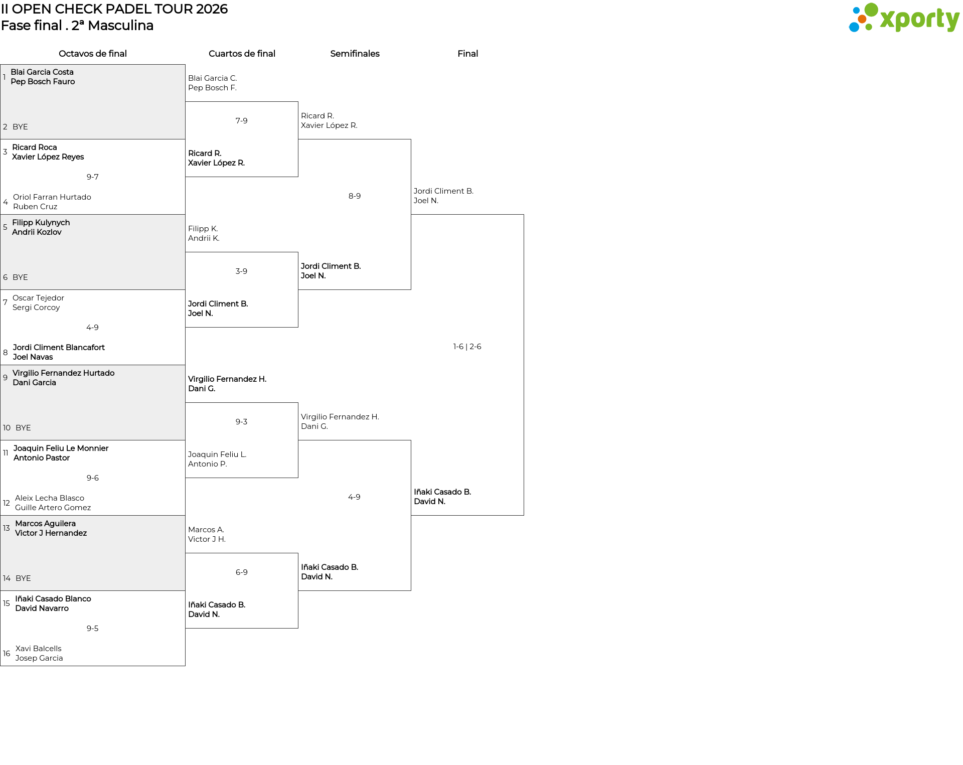 Cuadro principal 2ª Masculina