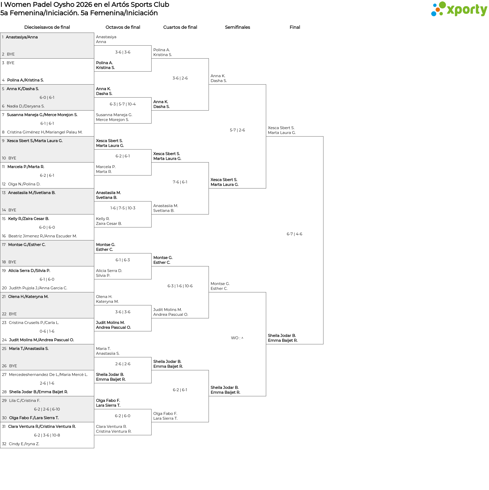 Cuadro principal 5a Femenina/Iniciación