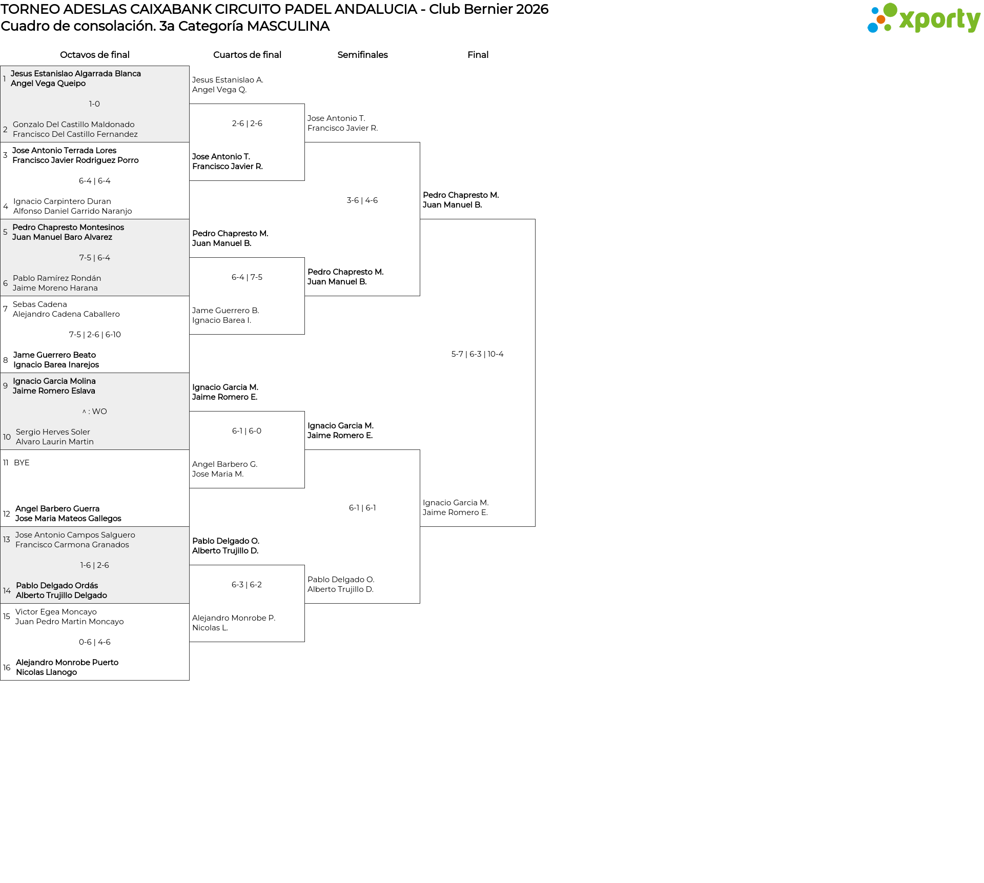 Cuadro de consolación 3a Categoría MASCULINA