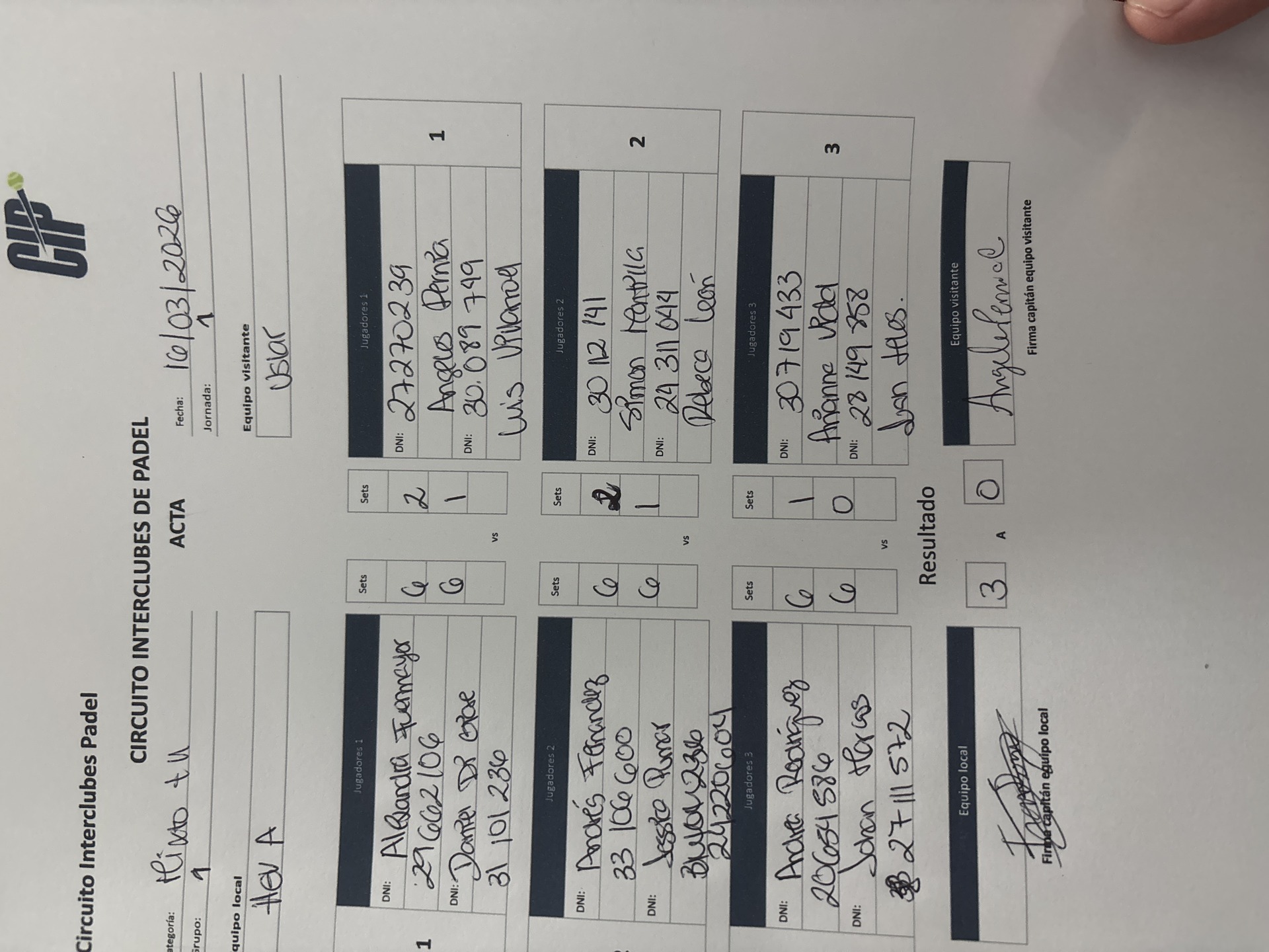 Imprimir acta del partido