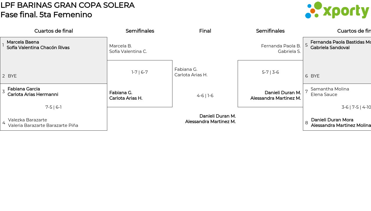 Fase grupos Fase final5ta Femenino