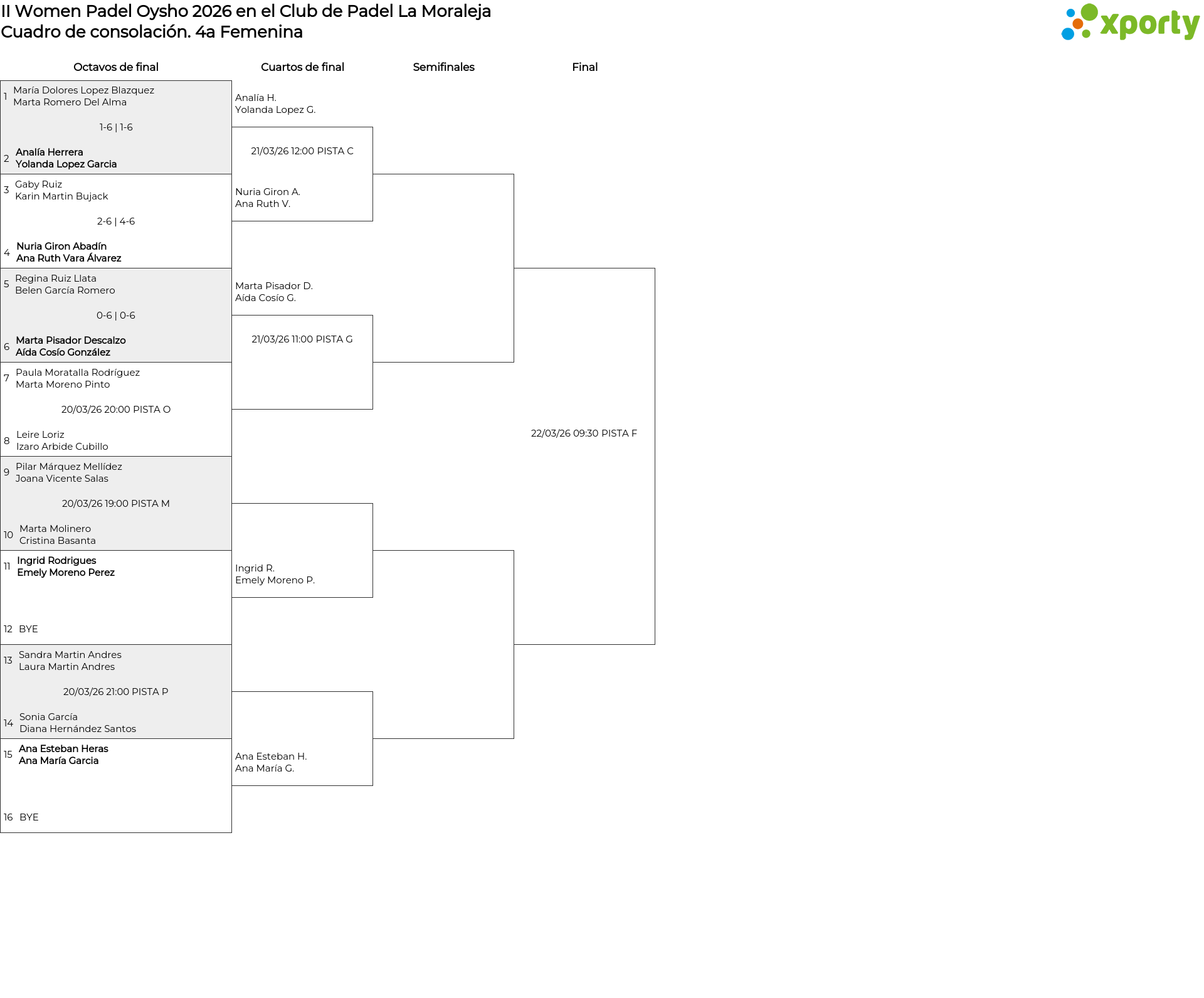 Cuadro de consolación 4a Femenina